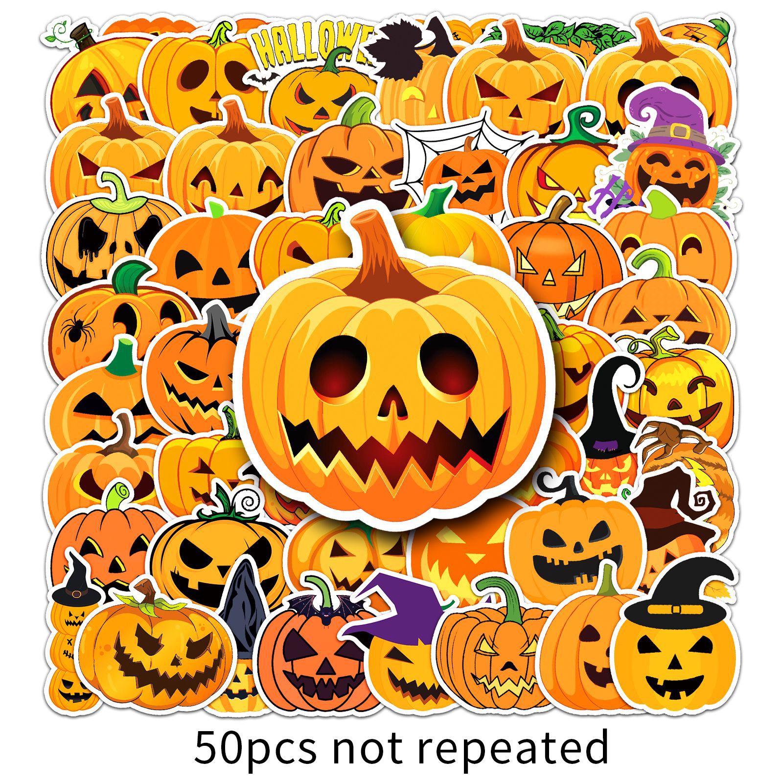 50张万圣节南瓜手账贴纸恐怖鬼脸手机壳笔记本奶茶杯贴画装饰防水