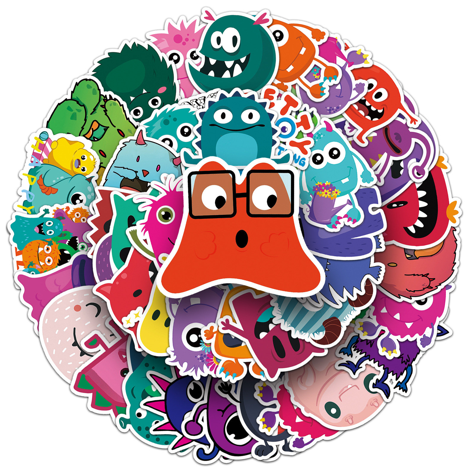 50张手账小怪兽可爱行李箱创意防水贴纸滑板车电脑平板卡通装饰