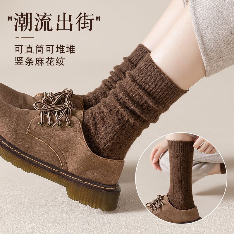 袜子女士秋冬新款纯色高筒袜堆堆袜潮流中筒袜女日系长袜女袜批发