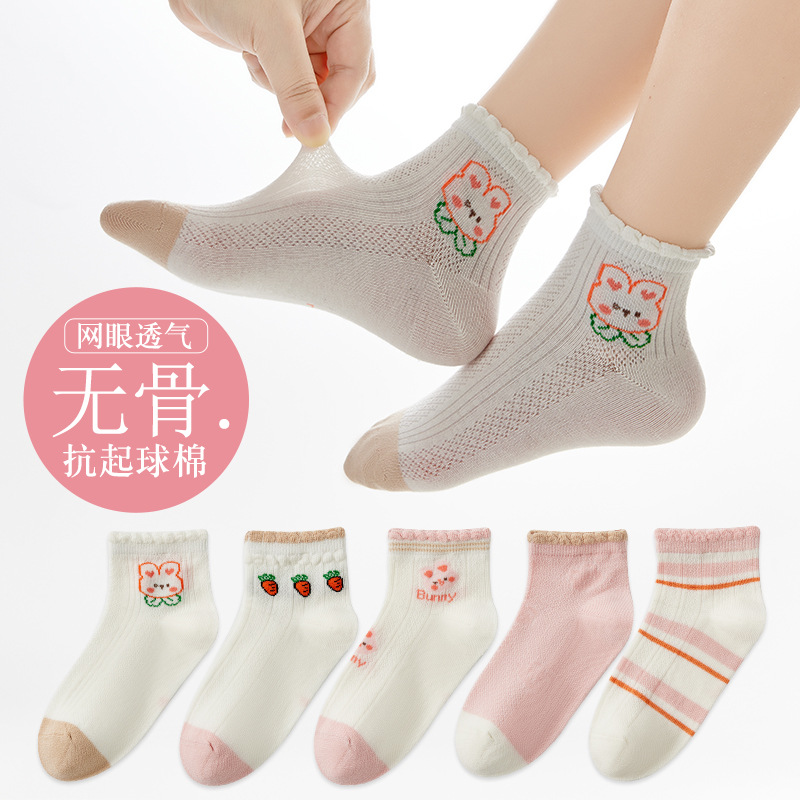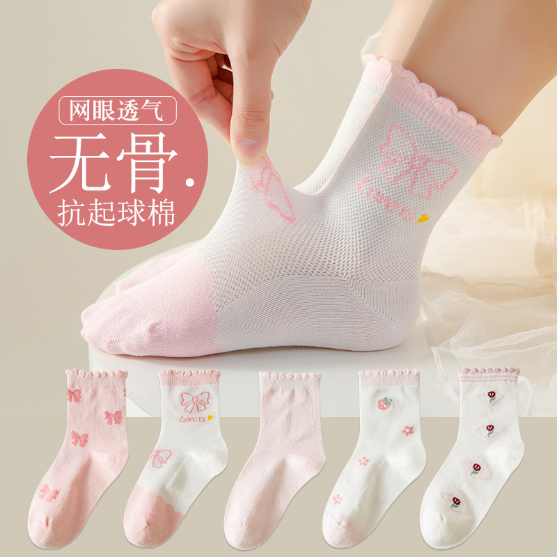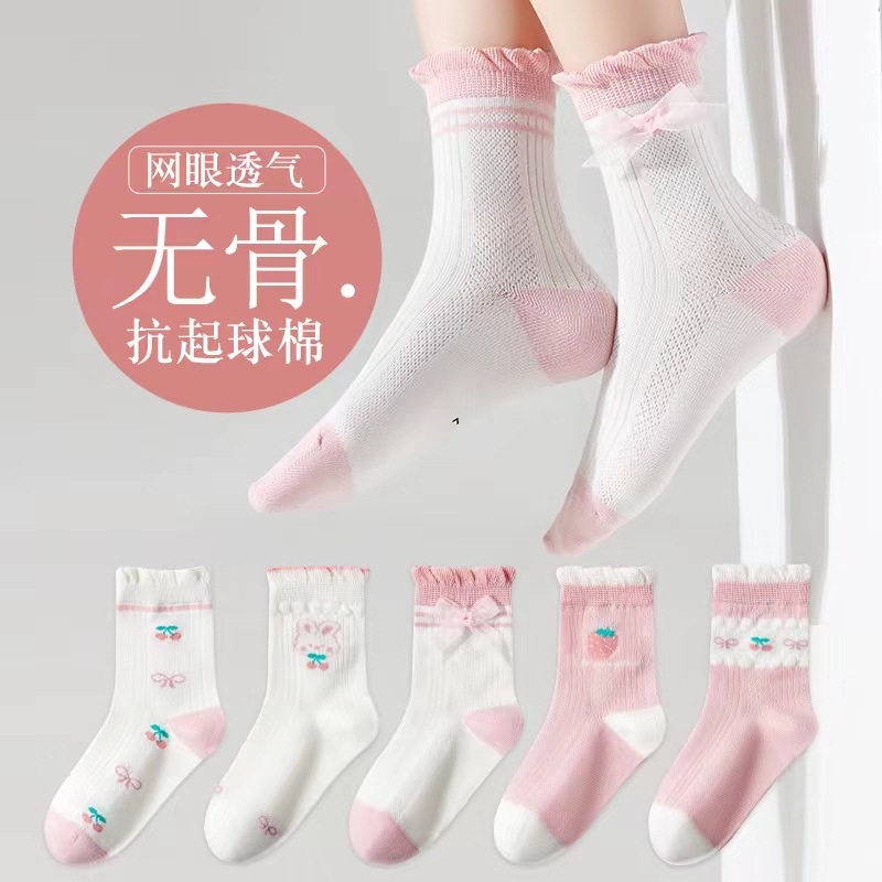 2024新款儿童袜子女童春夏薄款无骨抗起球女孩子网眼透气中筒棉袜