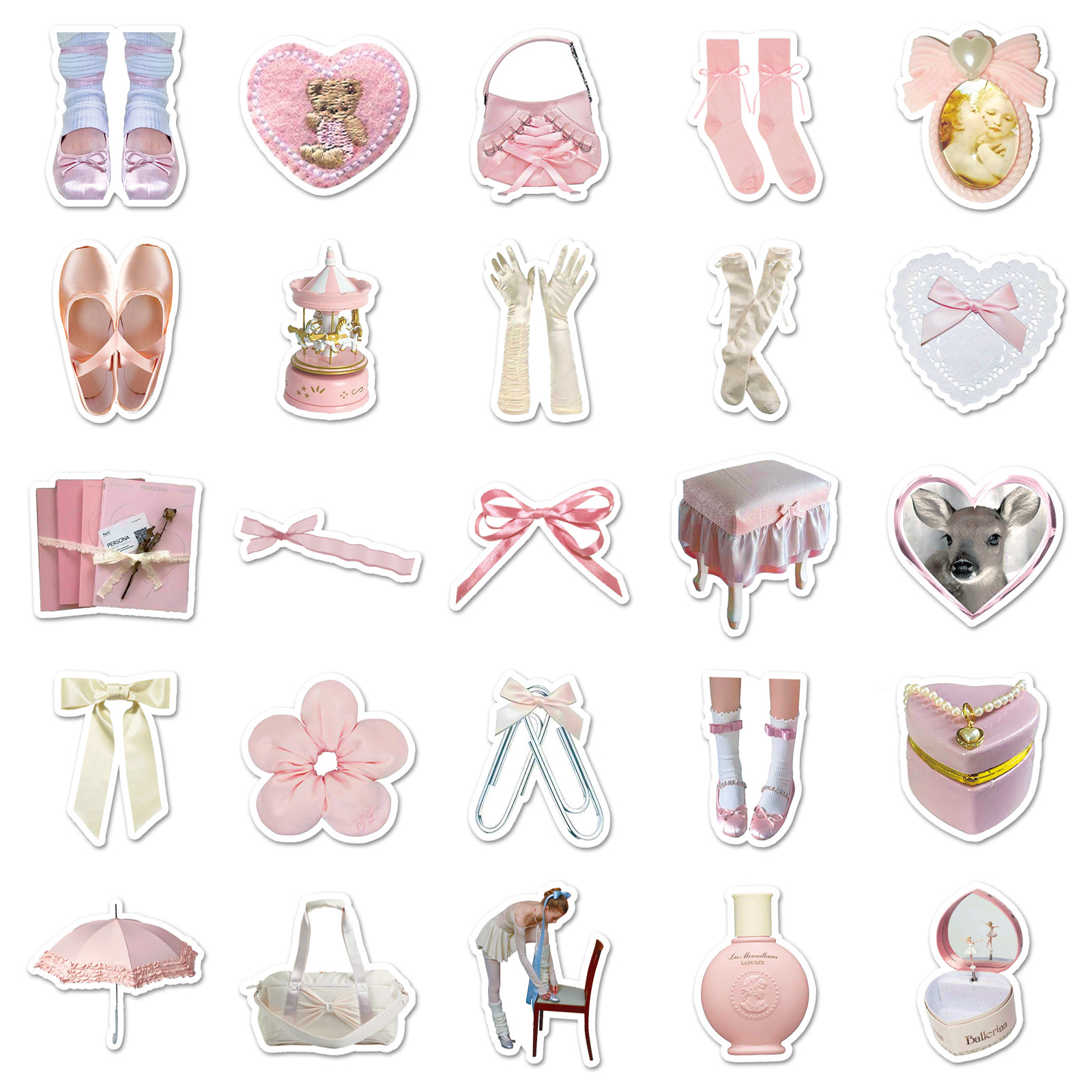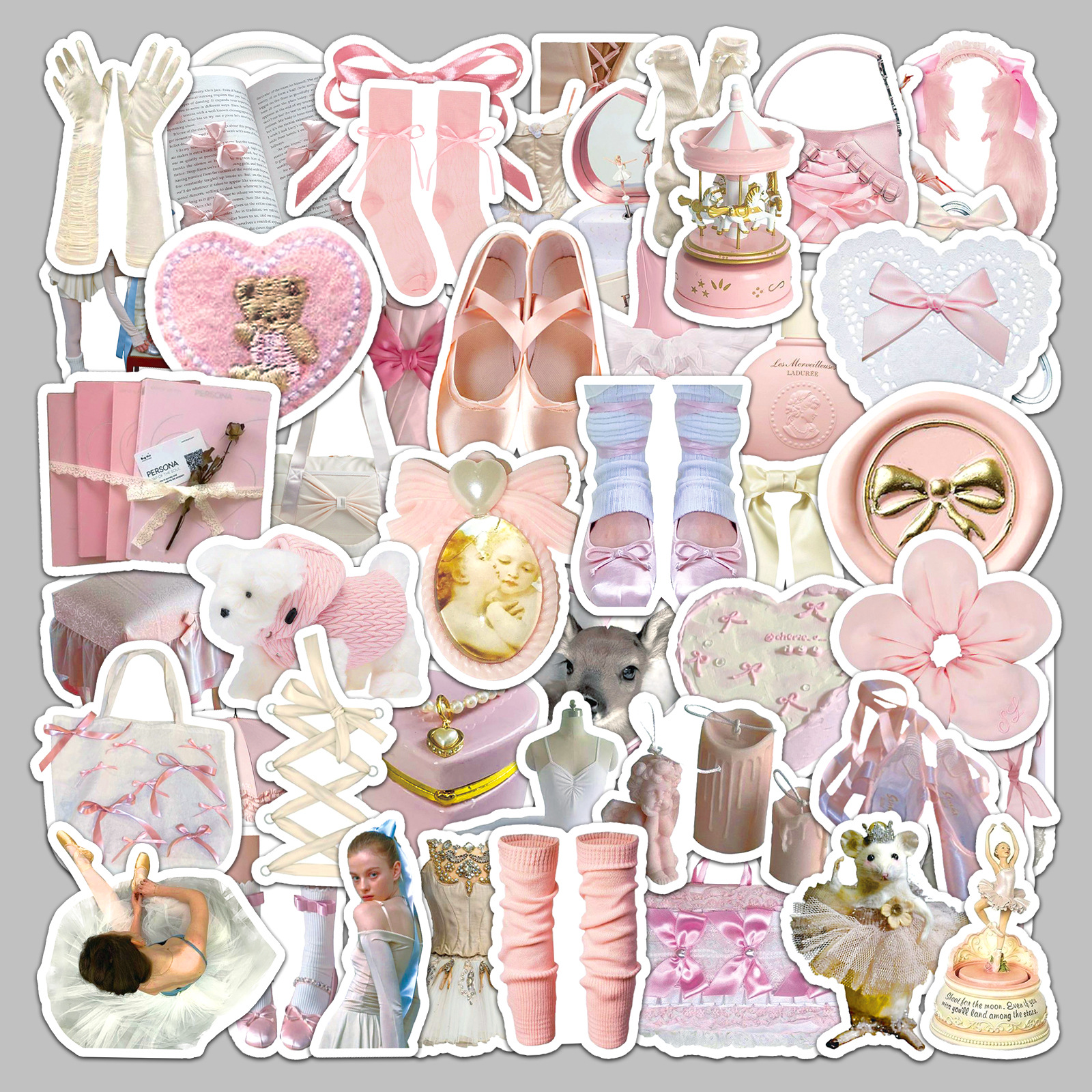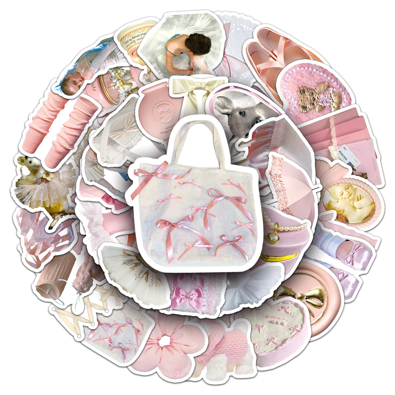 50张芭蕾风手账贴纸少女心diy手机壳笔记本水杯咕卡贴画装饰防水