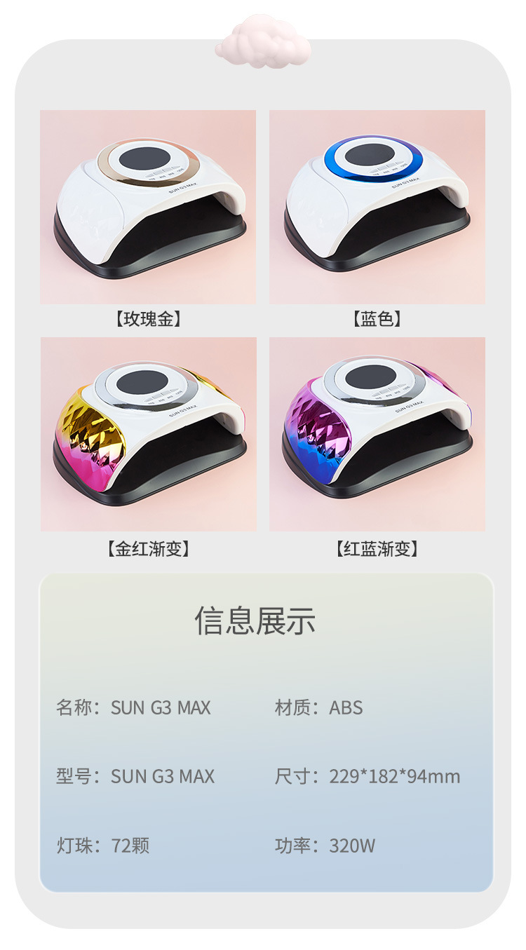 SUN G3 MAX美甲灯 320W大功率美甲机光疗灯不黑手uv灯美甲烤灯