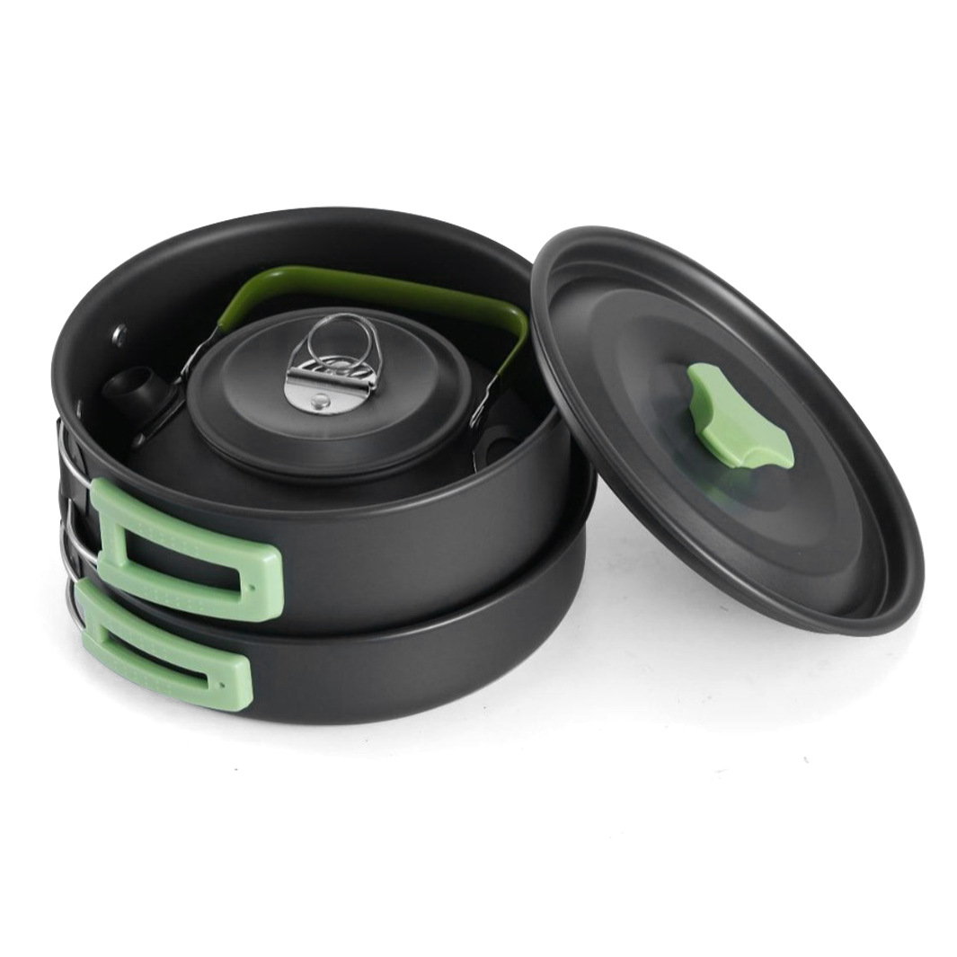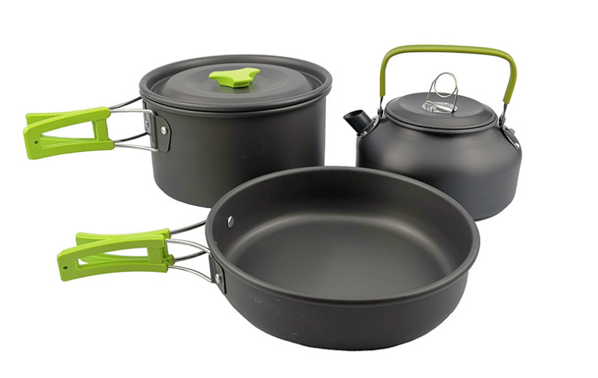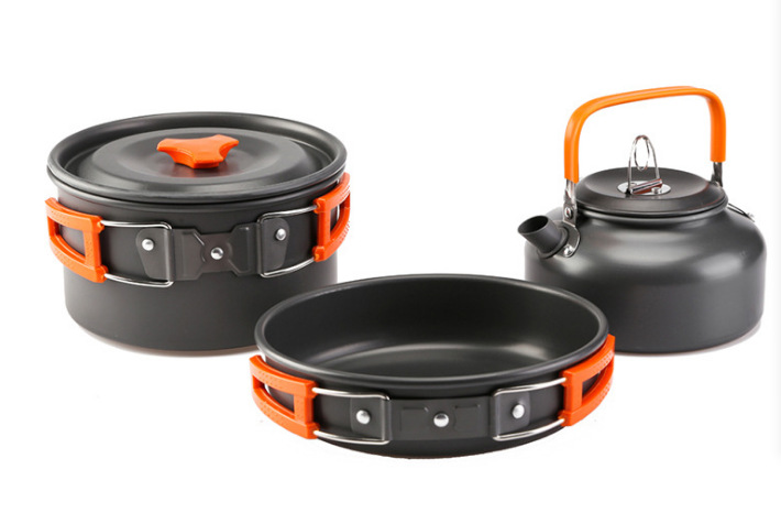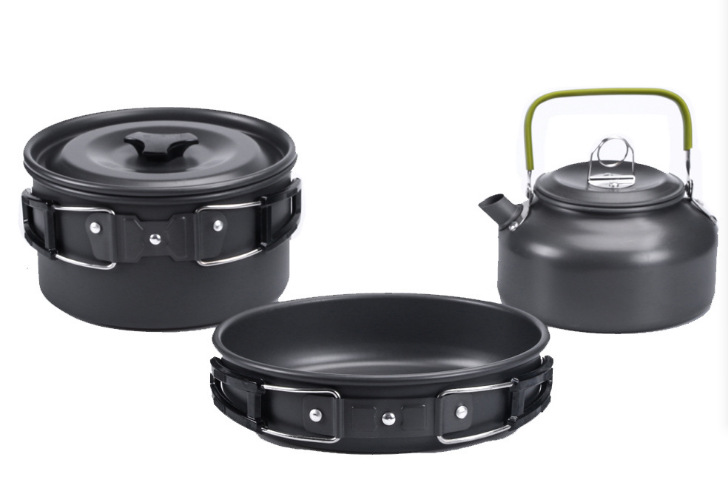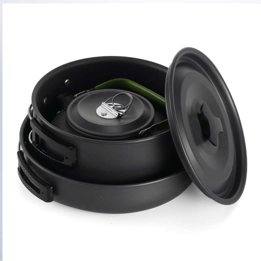 户外野营 2-3人套锅加茶壶组合 硬质氧化铝锅 便携式野营套锅组合