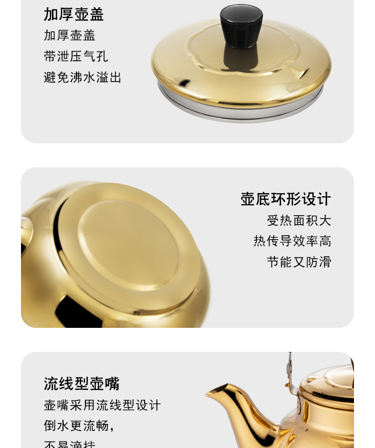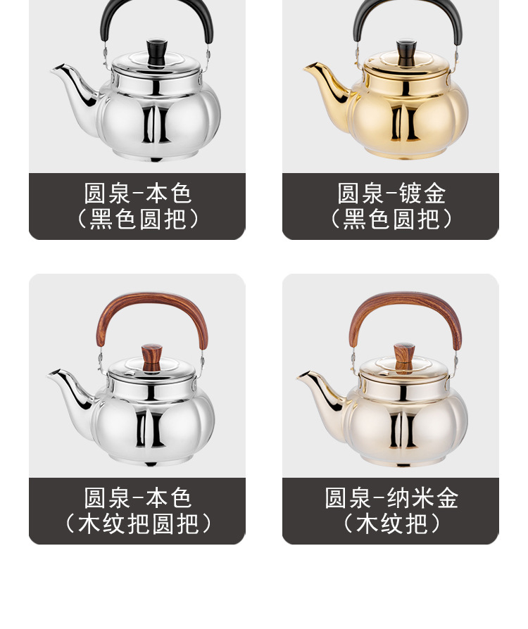 不锈钢圆泉水壶茶水壶煤气燃气电磁炉通用便携家用煮水壶