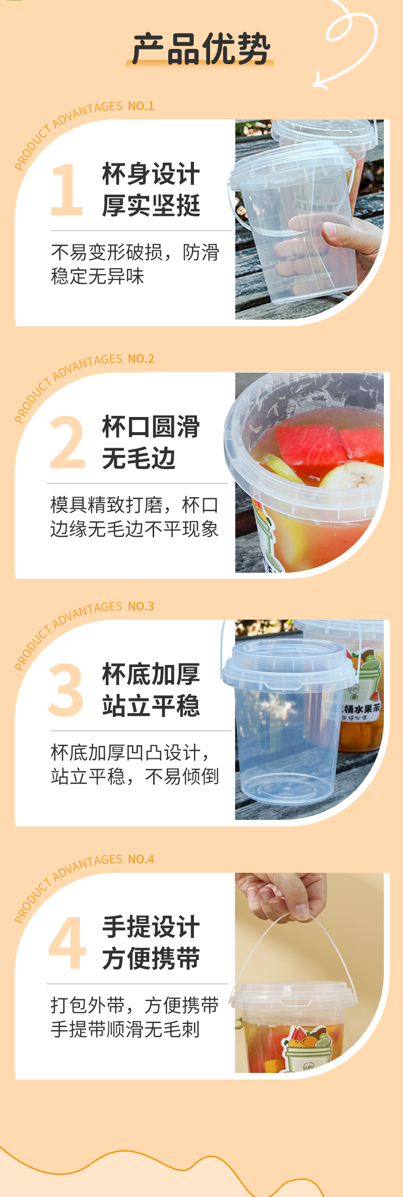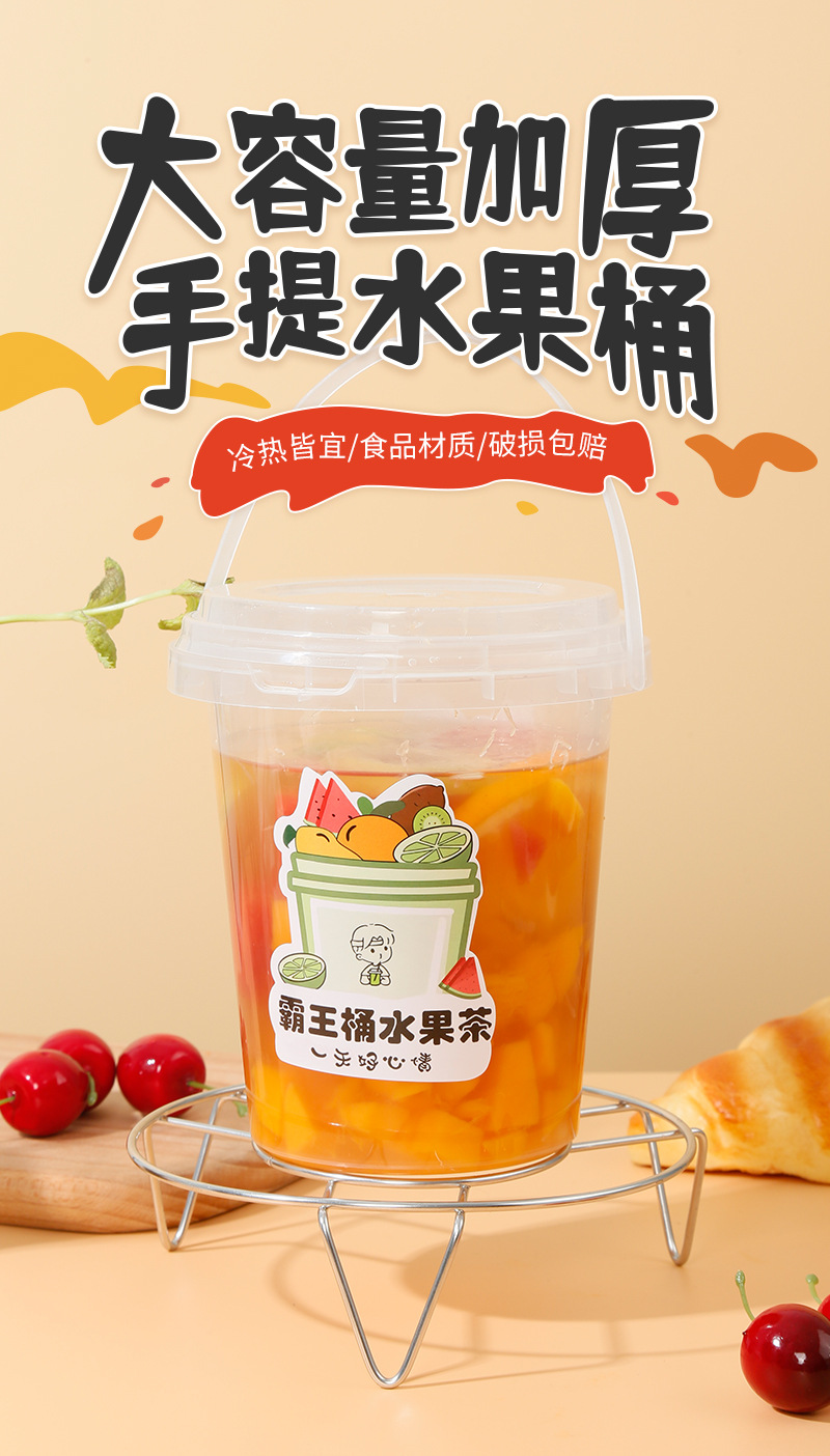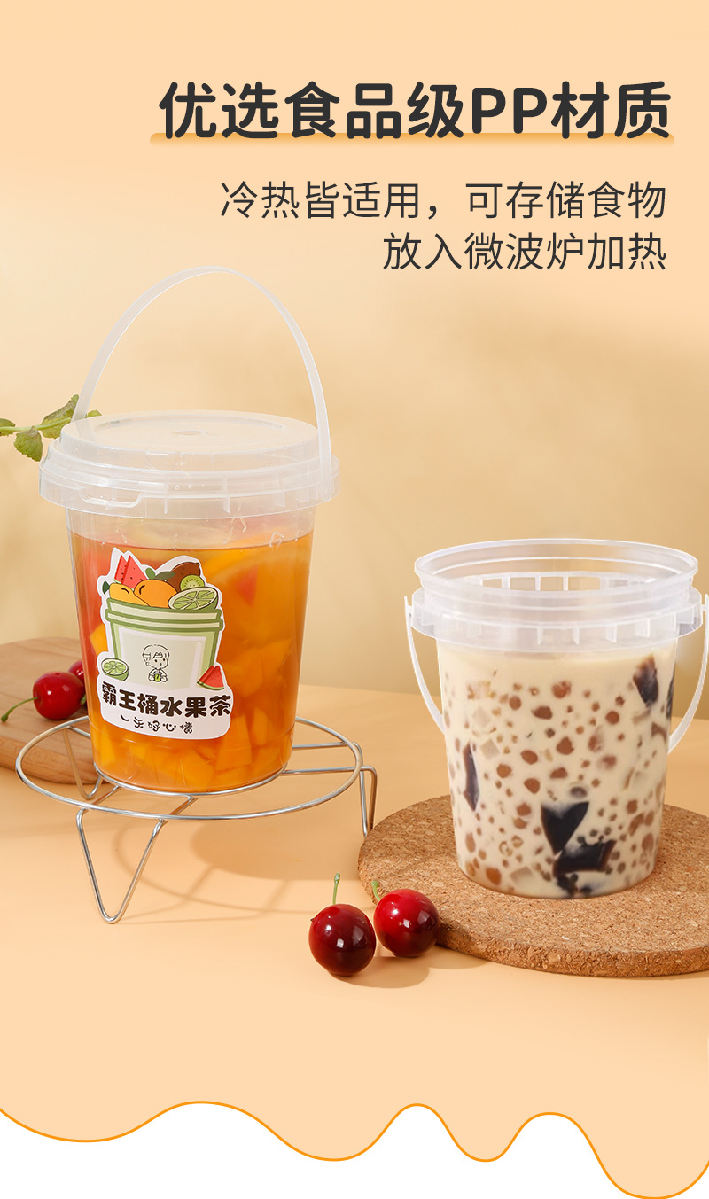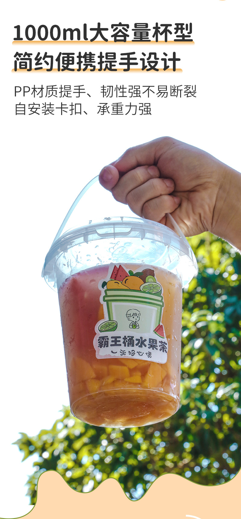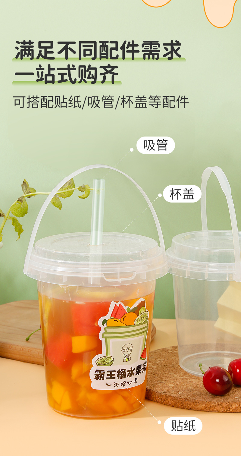 一次性杯子奶茶杯批发带盖1000ml水果桶带吸管贴纸水果茶杯霸王桶