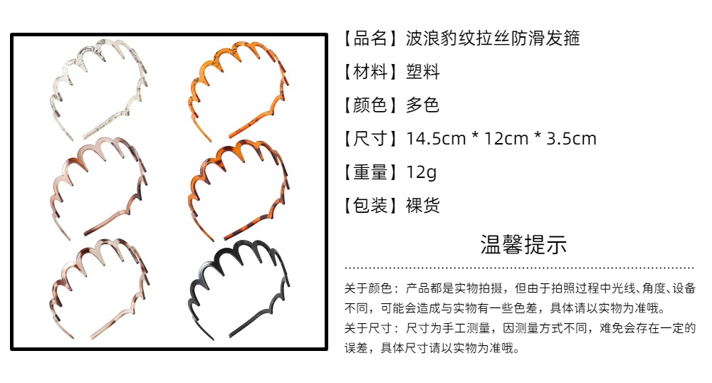 豹纹波浪盘发头箍韩版时尚发饰女透明拉丝防滑发箍防滑U形头箍