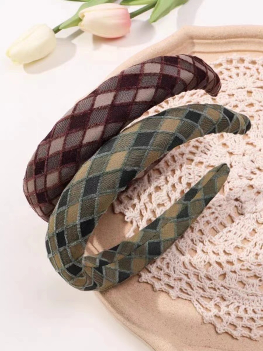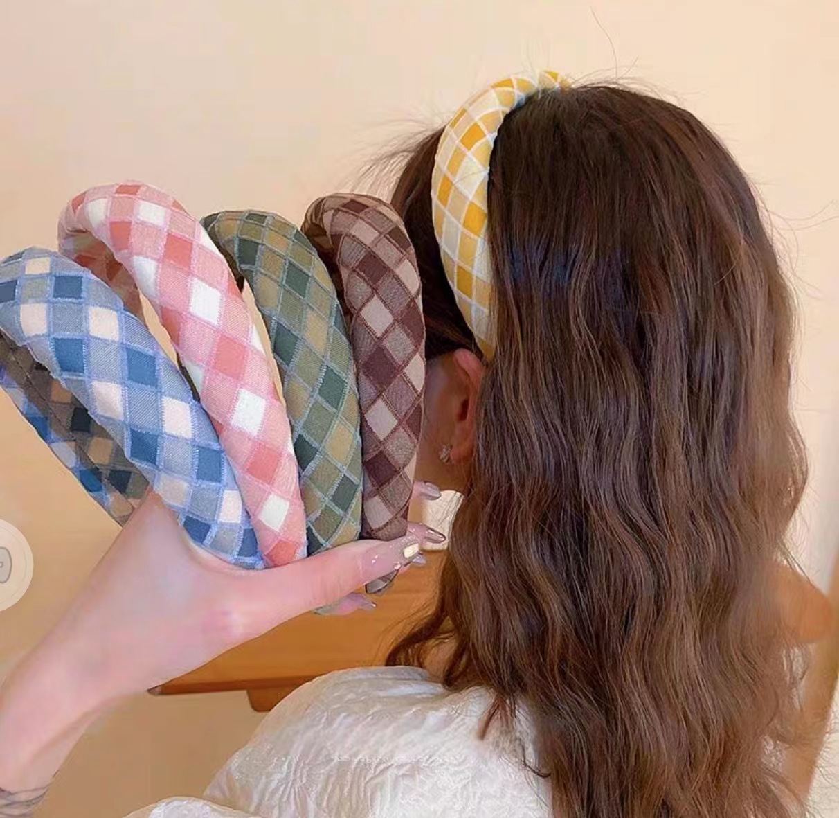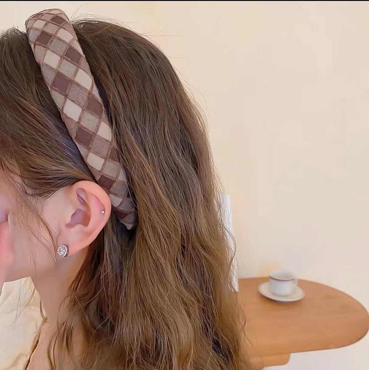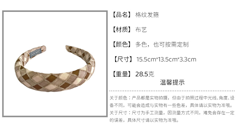 日韩 宽边布艺格纹发箍 简约款百搭高颅顶美少女头饰甜美发饰批发