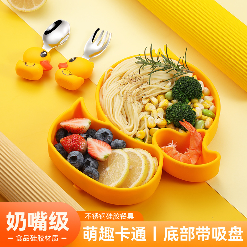 跨境新款创意儿童卡通硅胶餐盘婴幼儿吸盘式一体分格辅食餐具套装
