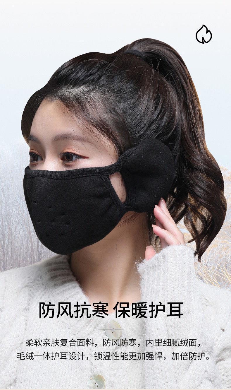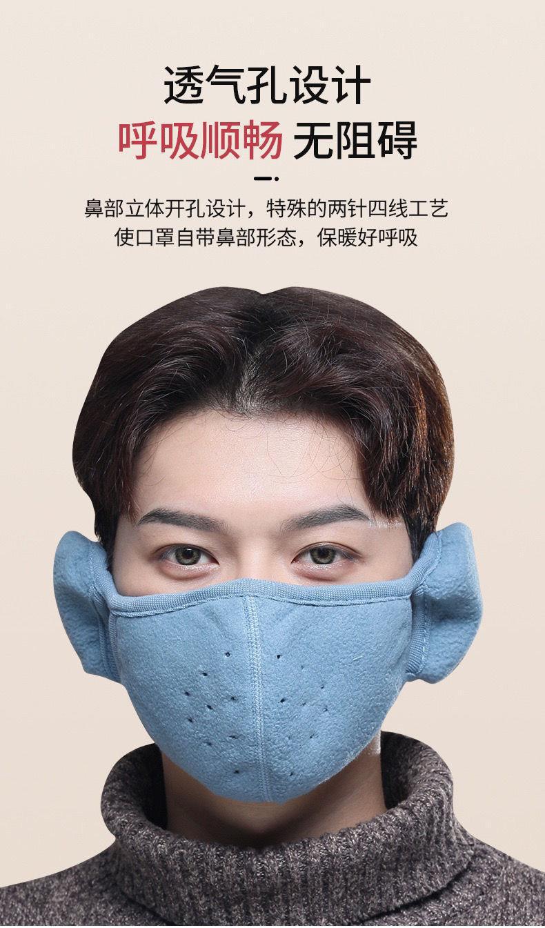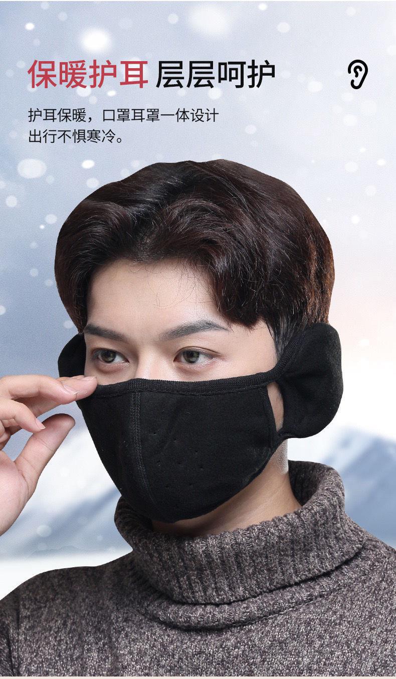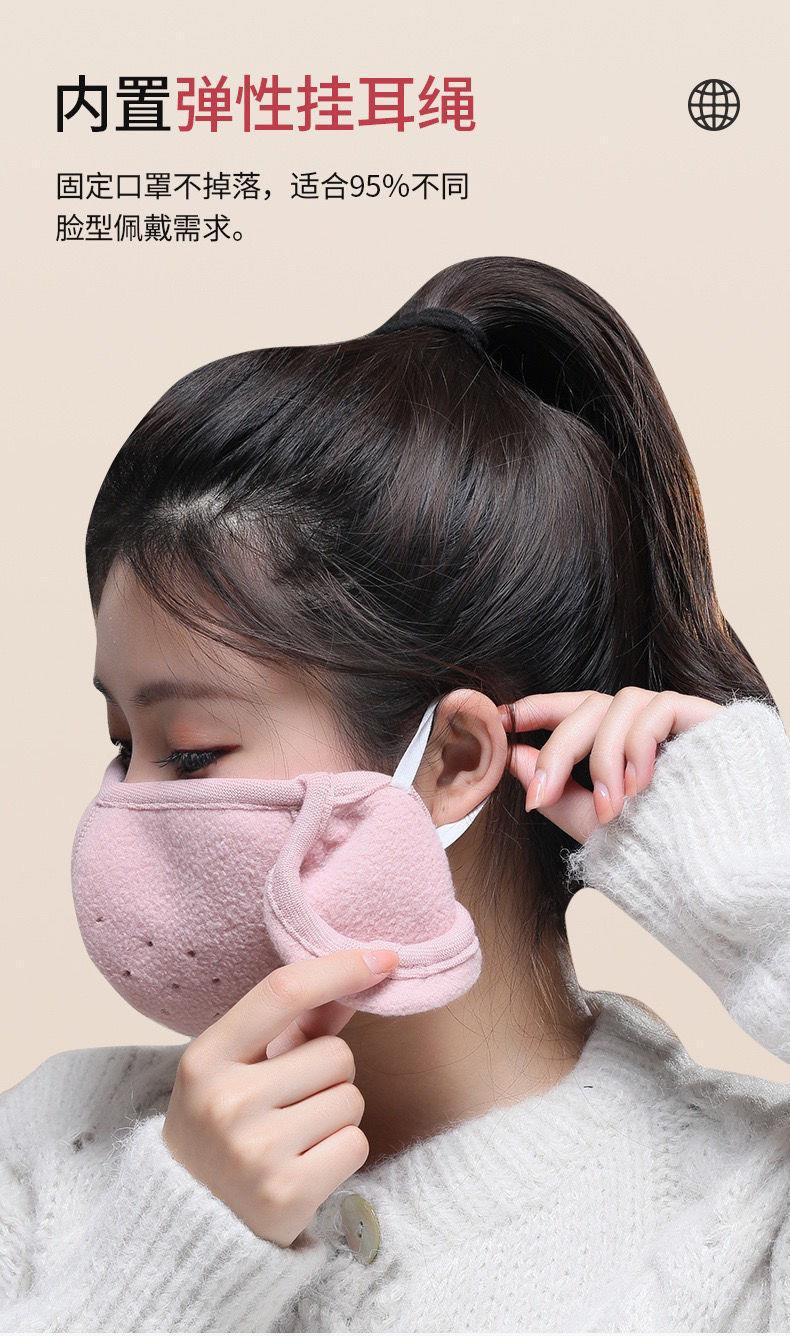 冬季保暖口罩男女摇粒绒加绒加厚防寒防风透气二合一保暖护耳口罩