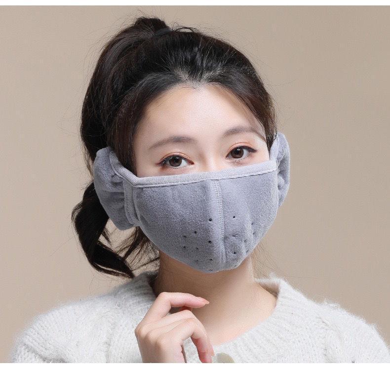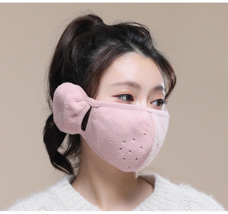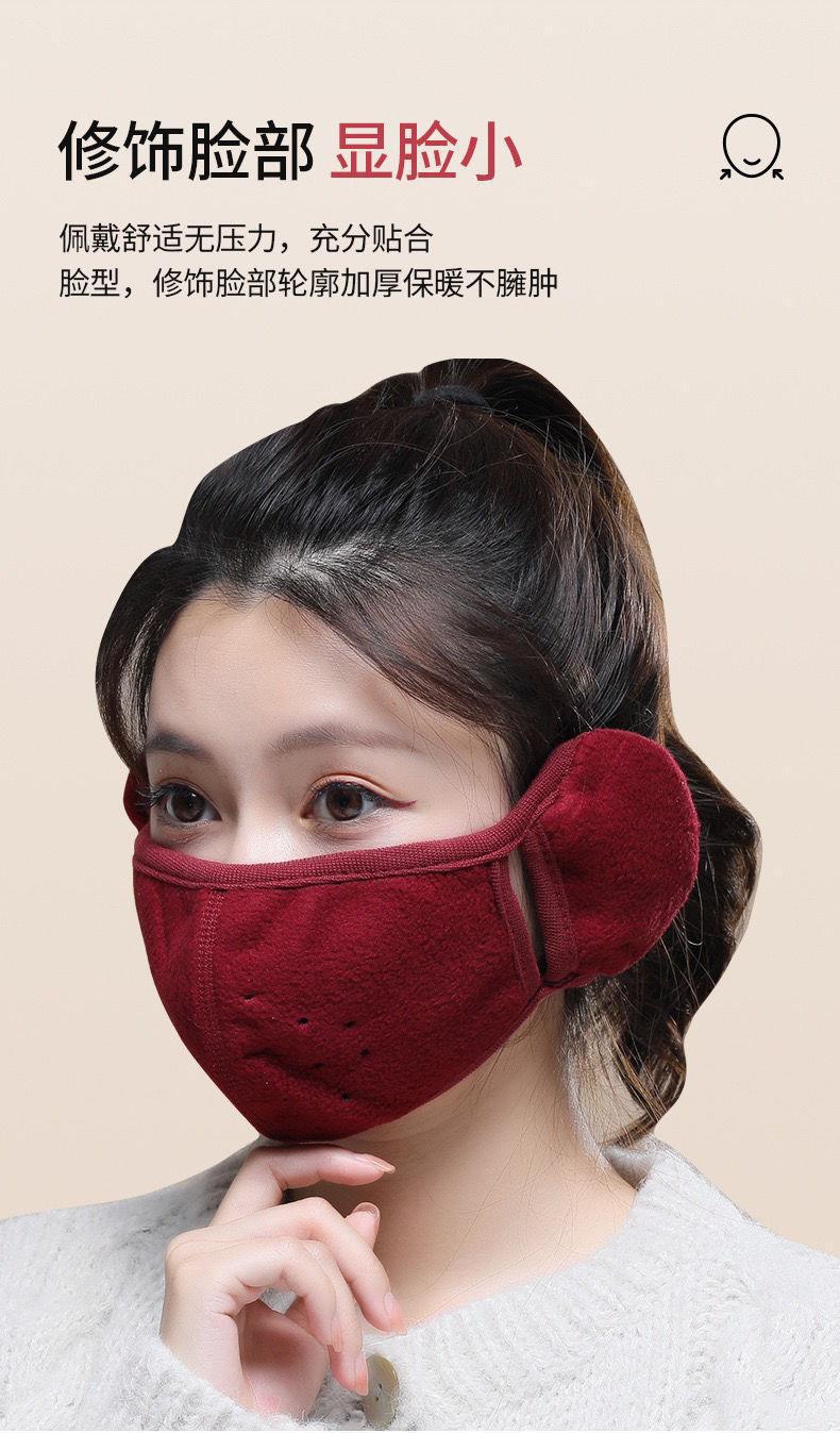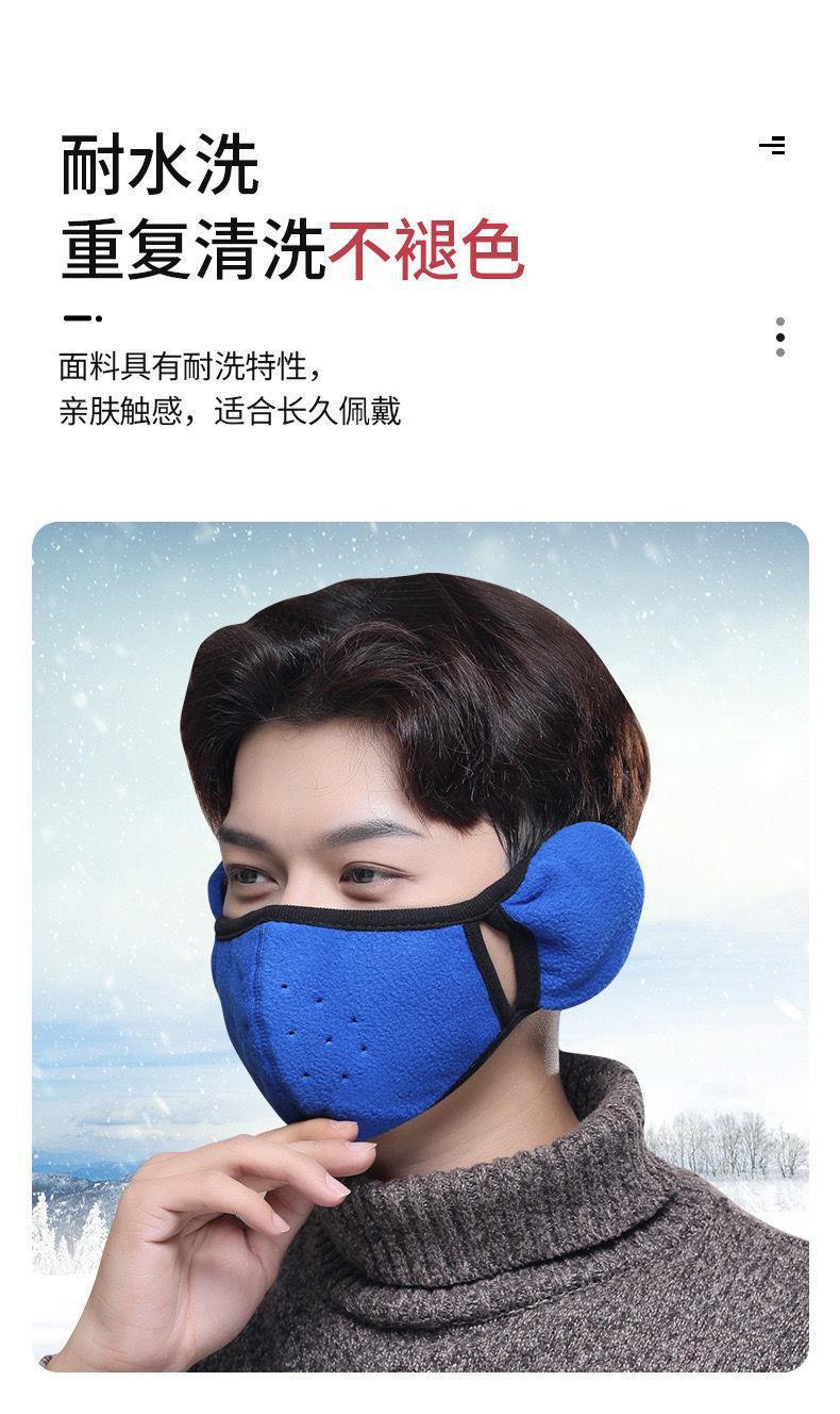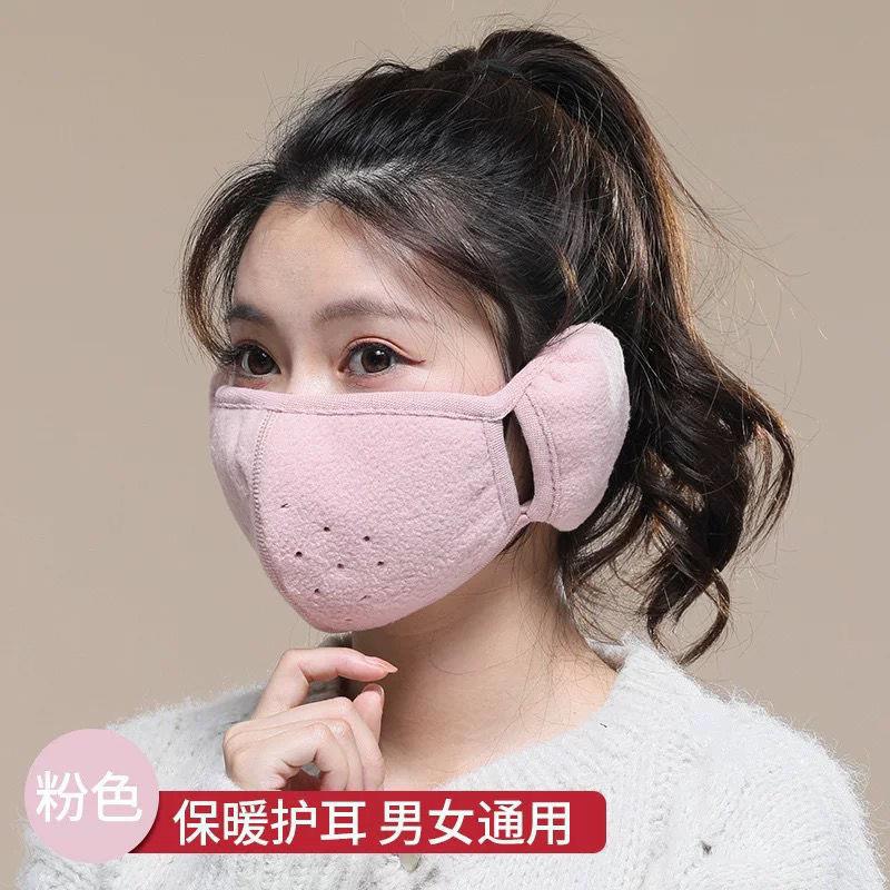 冬季保暖口罩男女摇粒绒加绒加厚防寒防风透气二合一保暖护耳口罩