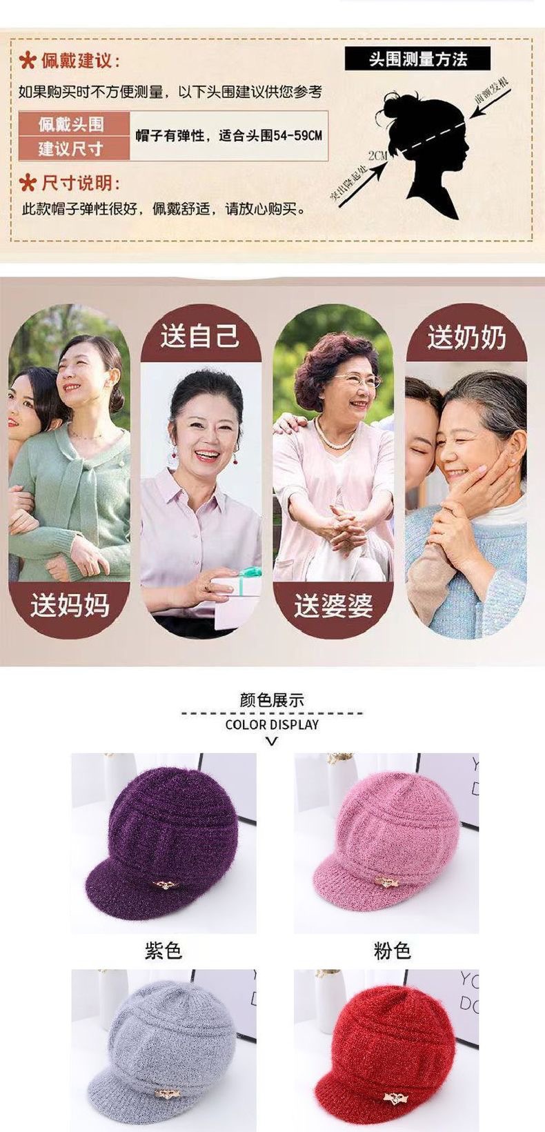 冬季新款中老年帽子女针织毛线帽女士加绒加厚保暖护耳妈妈奶奶