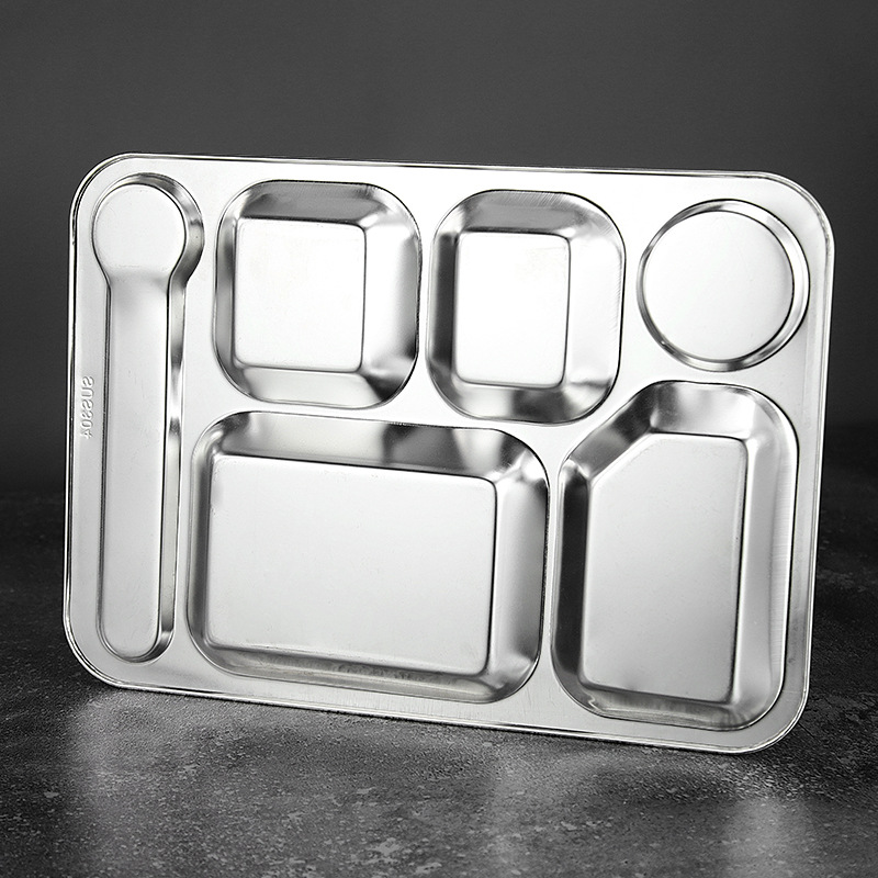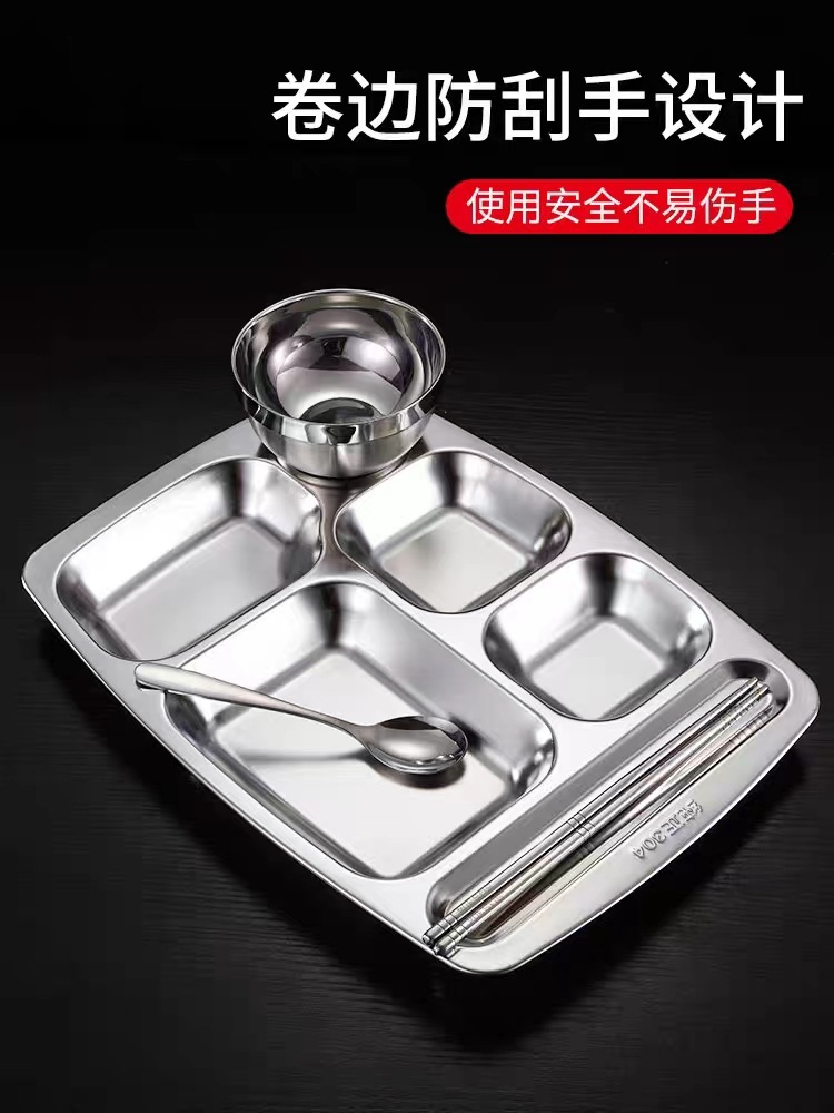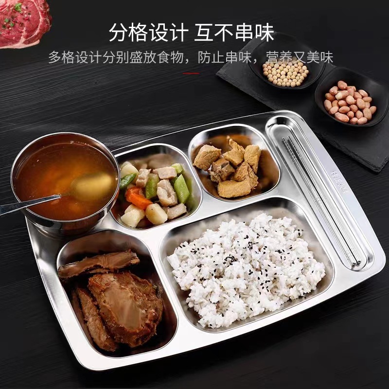 学校食堂成人五六七格餐盘 幼儿园儿童学生不锈钢餐盘 304快餐盘