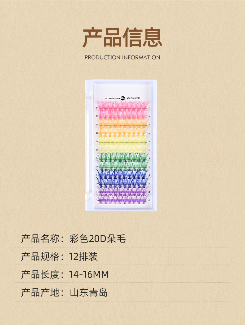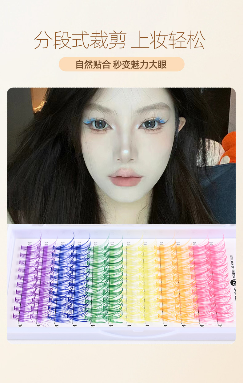 20D彩色朵毛假睫毛 热熔朵毛分段式已剪好眼睫毛跨境彩色睫毛