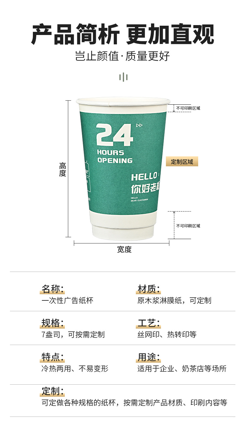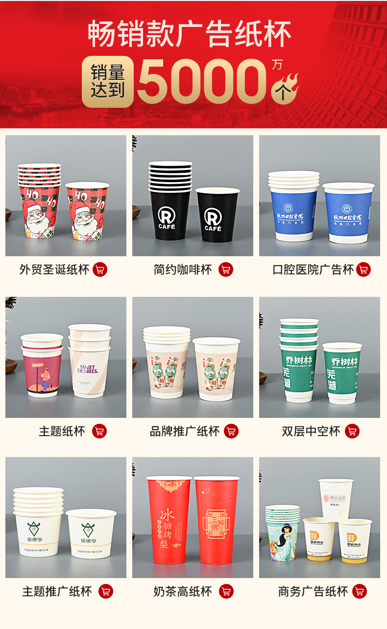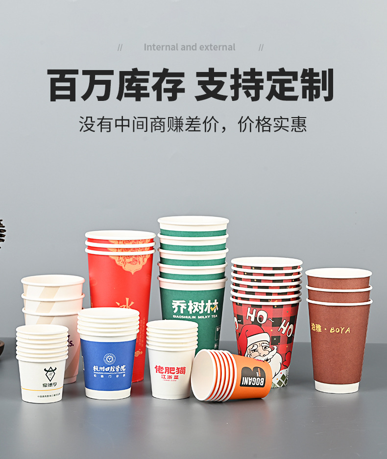 厂家批发定 制一次性纸杯家用热饮商用会客水杯超市咖啡杯奶茶杯