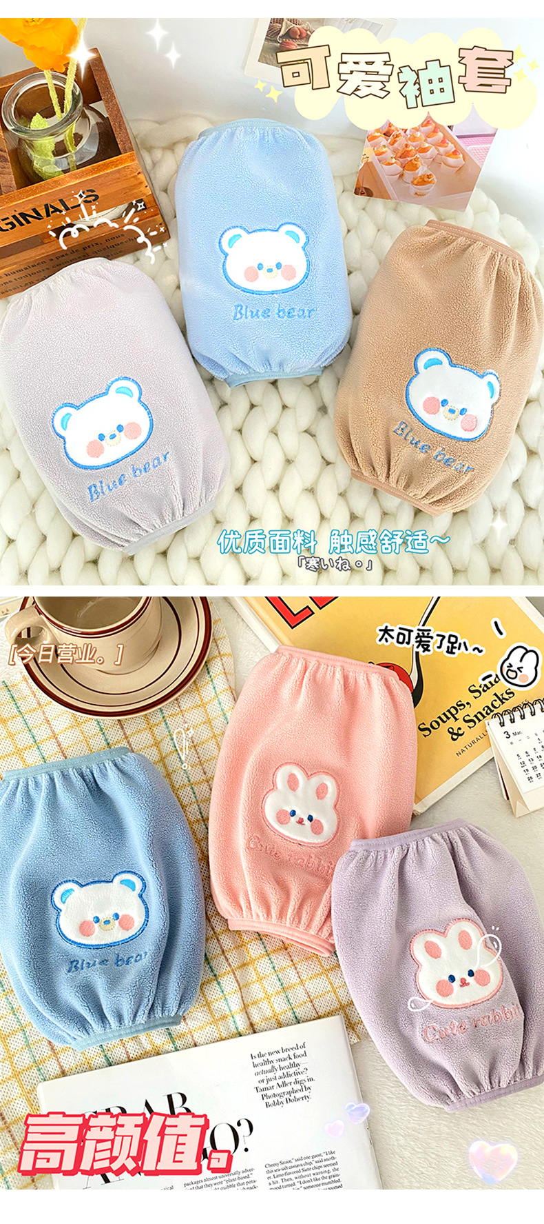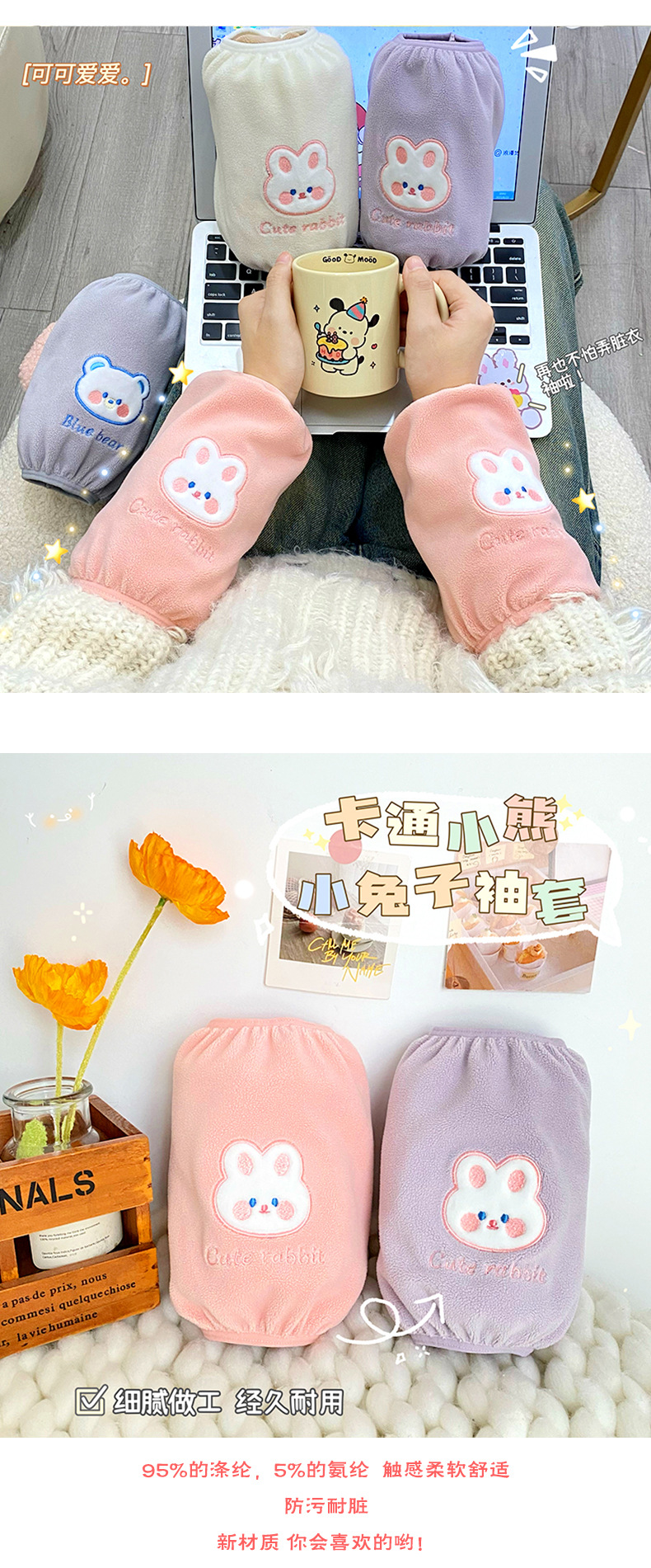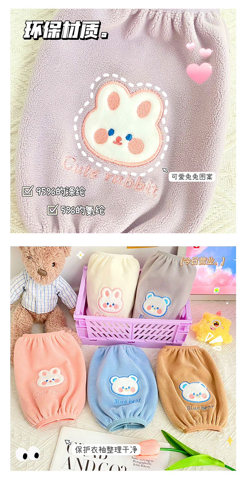 新款卡通可爱熊兔袖套毛绒刺绣图案防污耐脏袖套秋冬防脏防护套袖