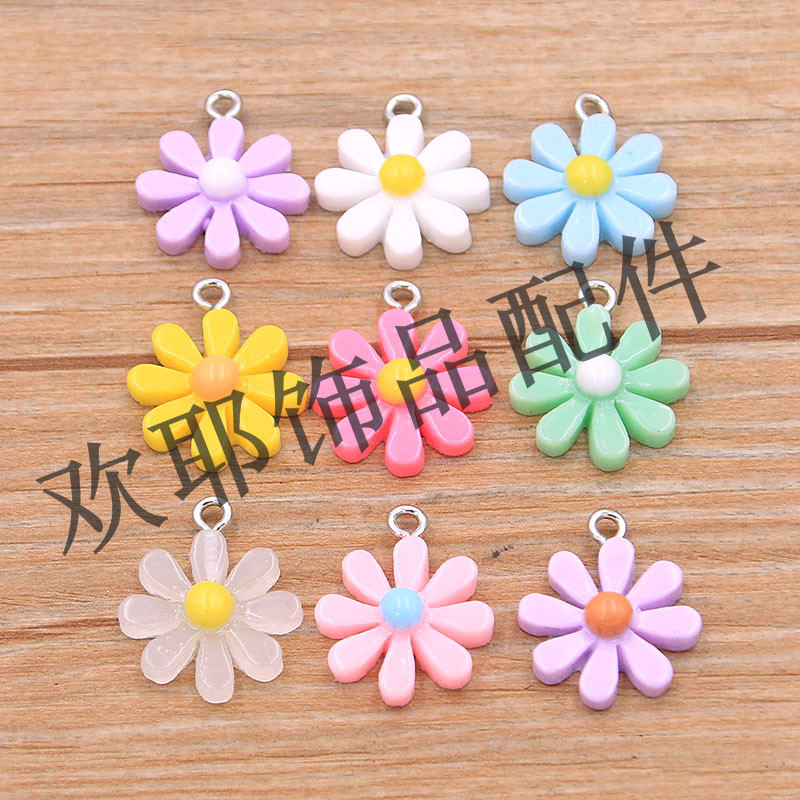 9色 17*20mm DIY树脂亚克力配件 雏菊太阳花吊坠 箱包项手链挂饰