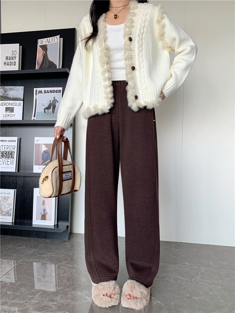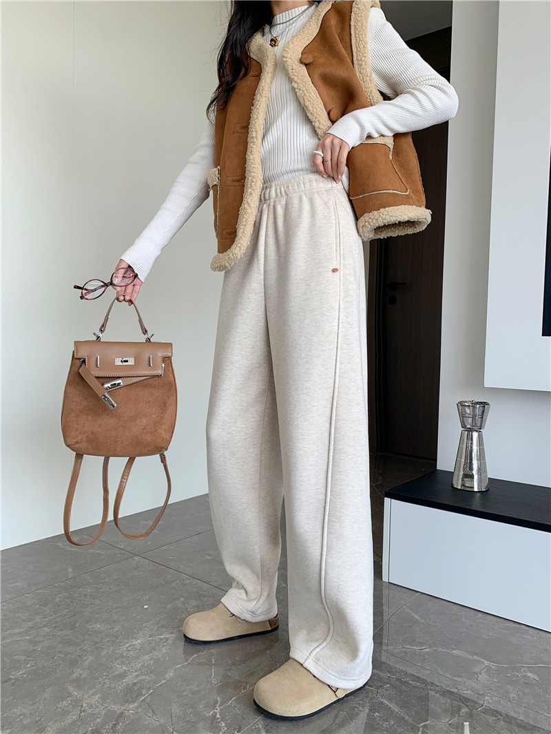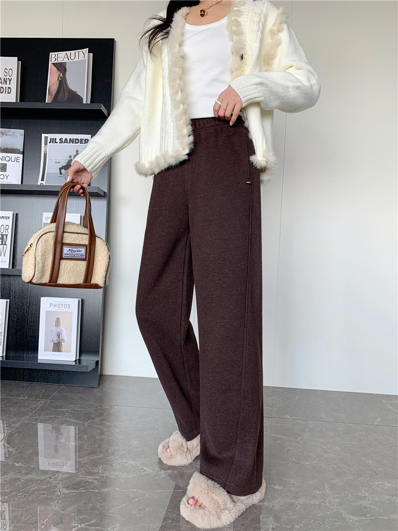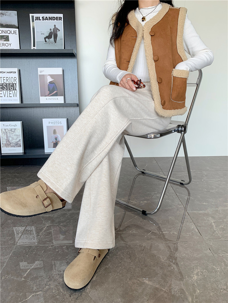 2024版型正修饰腿型高腰宽松直筒裤厚羊毛阔腿裤女秋冬新款