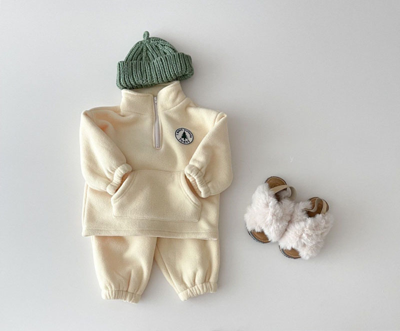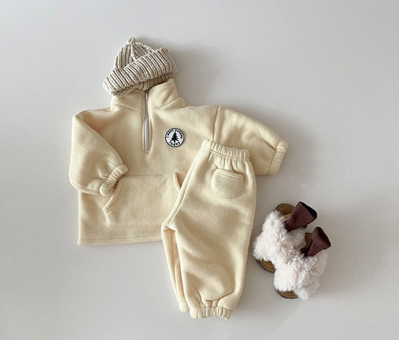韩版ins婴幼童装加绒加厚时尚套装冬摇料绒高领卫衣裤子两件套潮