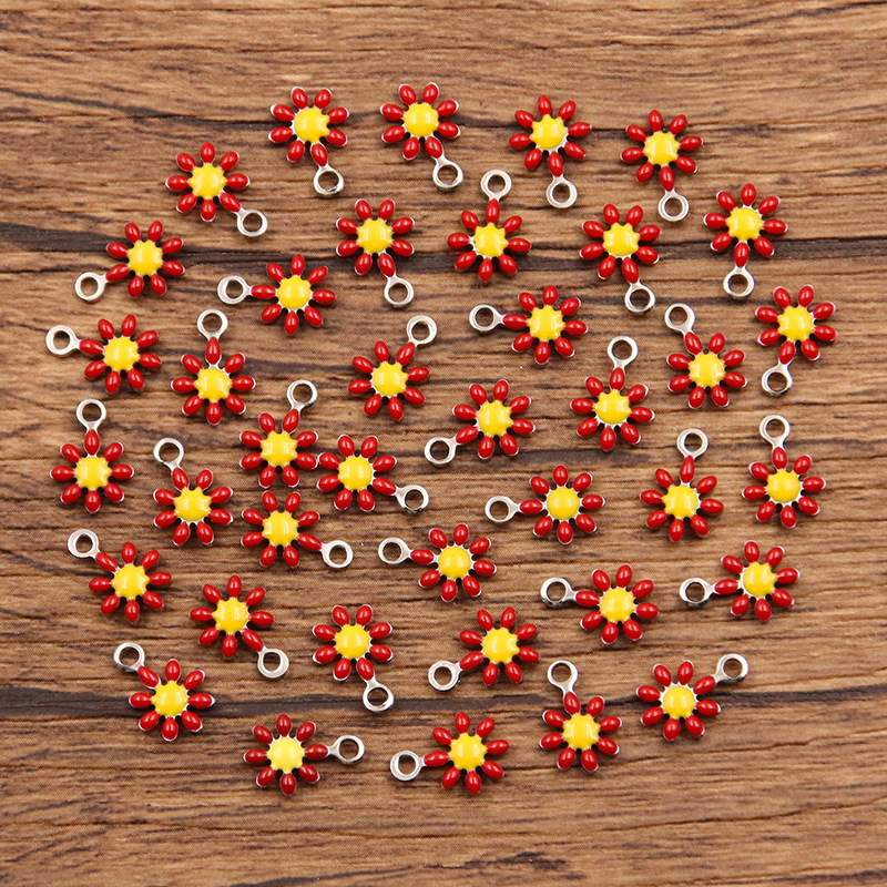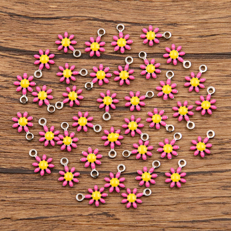 10色 7X10mm 不锈钢饰品配件 植物魅力 彩色滴油雏菊太阳花吊坠