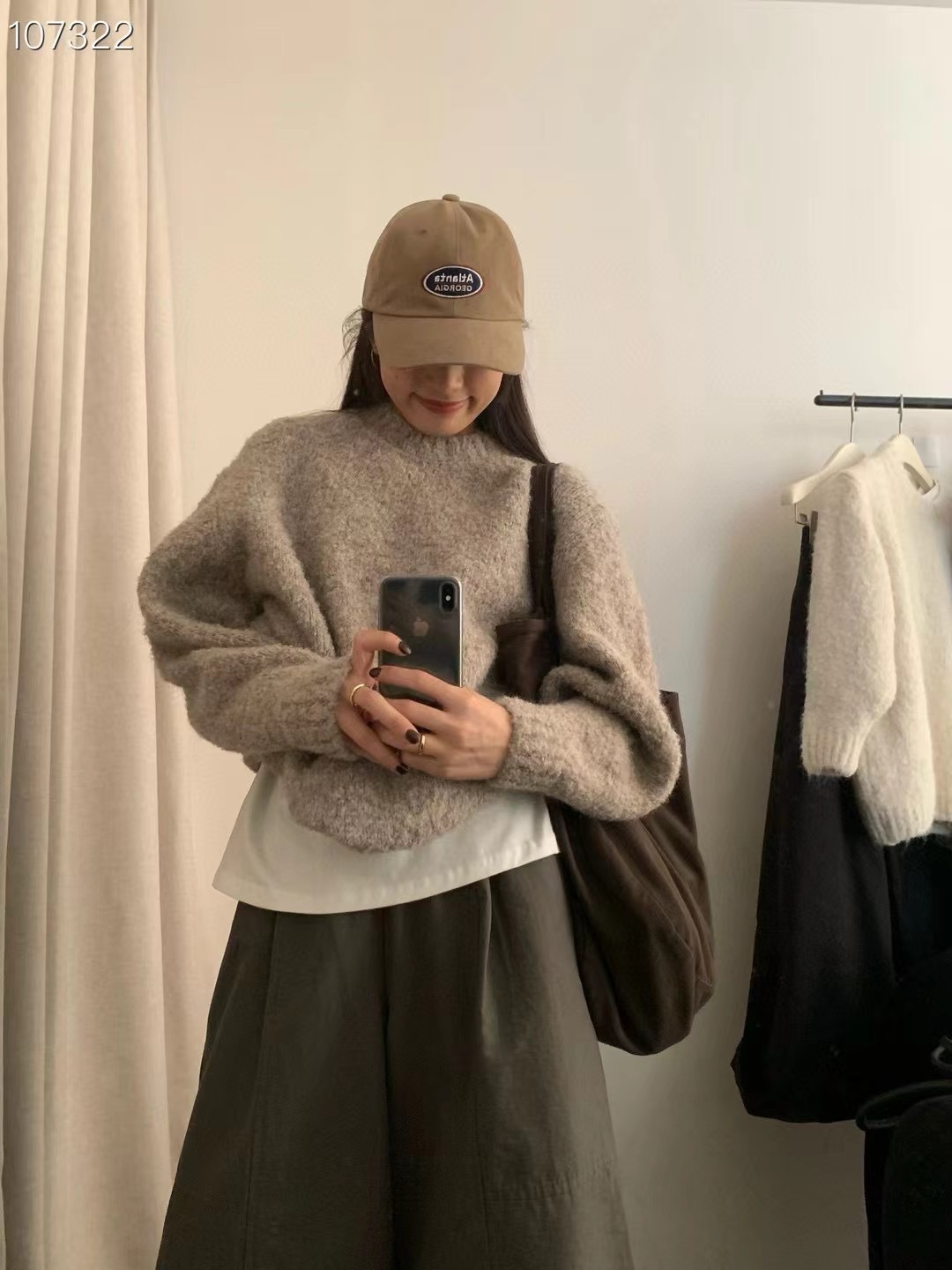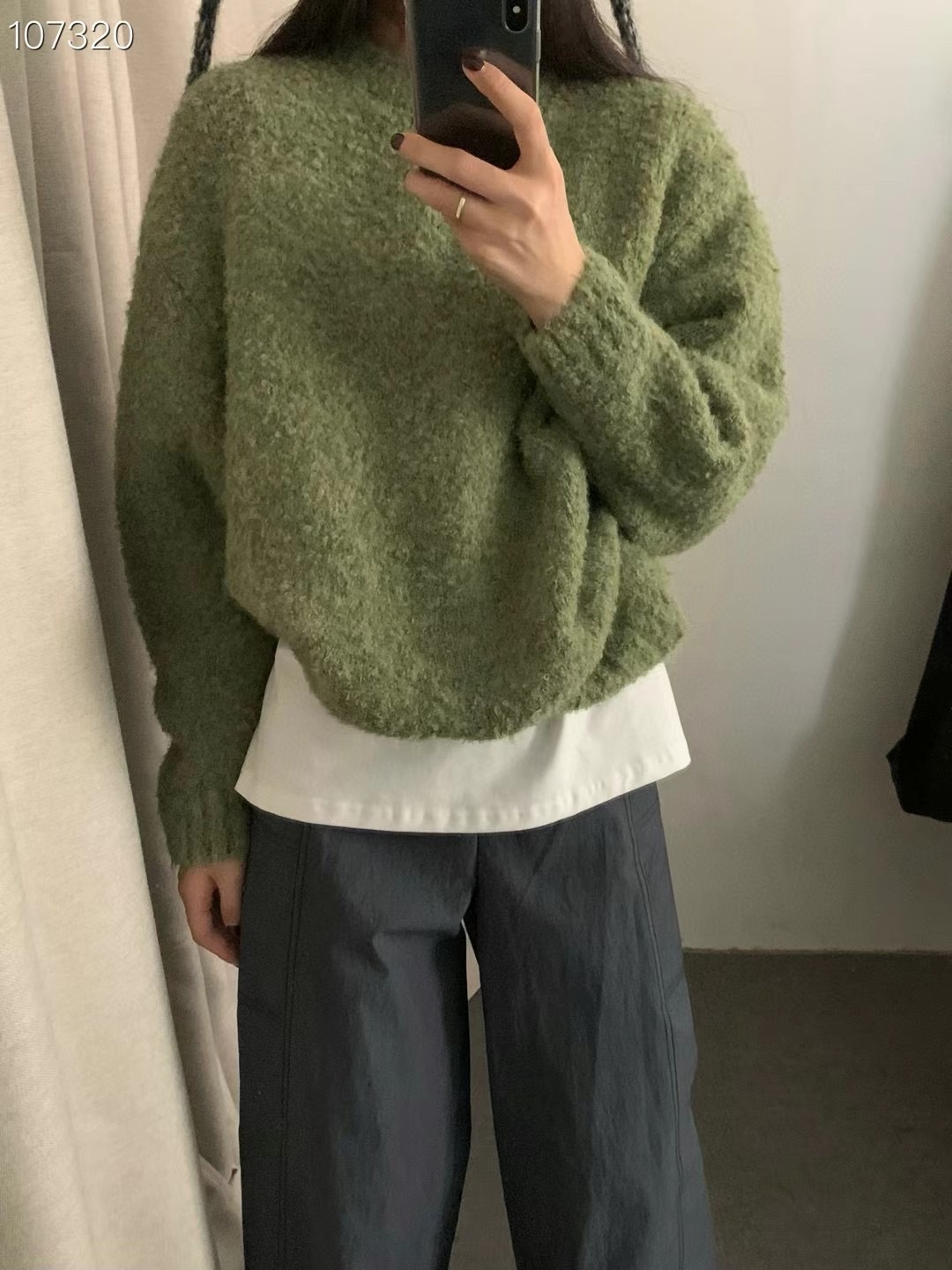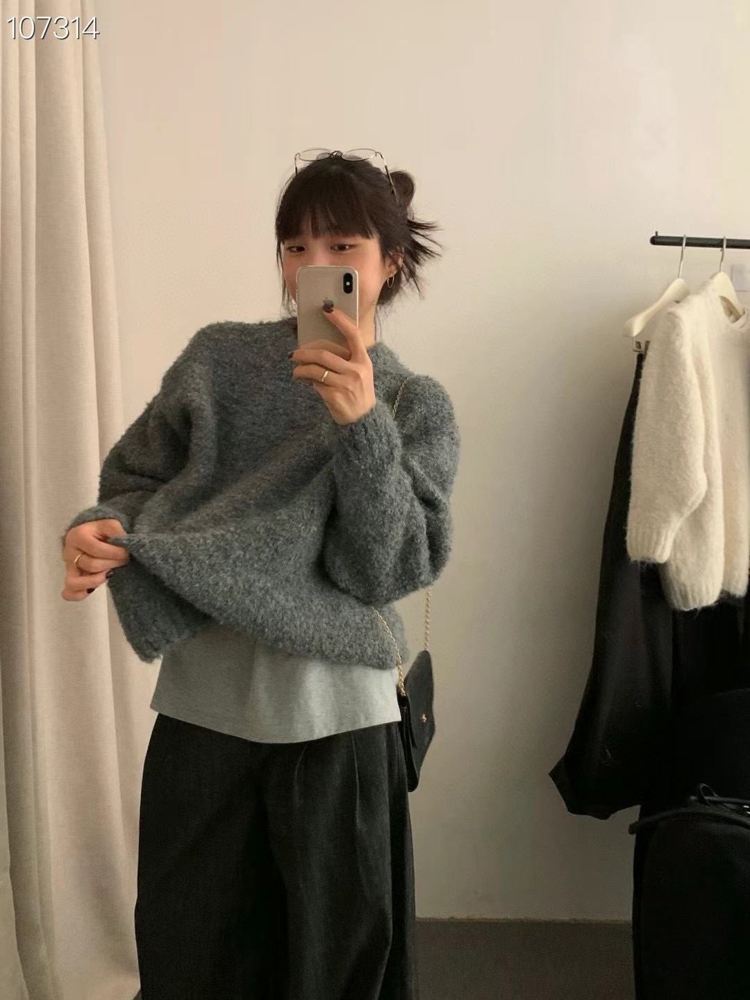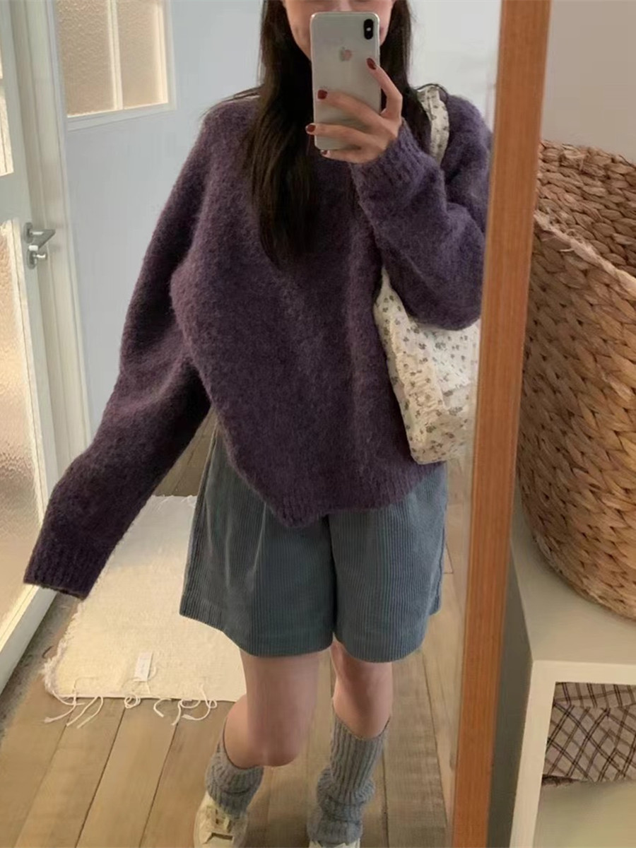 韩国温柔风圈圈纱紫色套头毛衣女秋冬新款糯叽叽圆领针织衫上衣潮