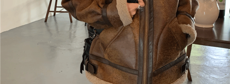羊羔毛外套女装秋冬2023新款宽松加厚韩版皮毛一体机车服皮衣夹克