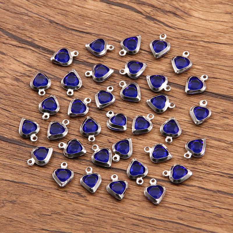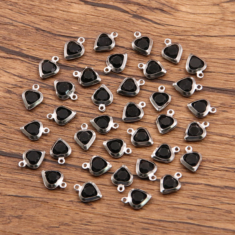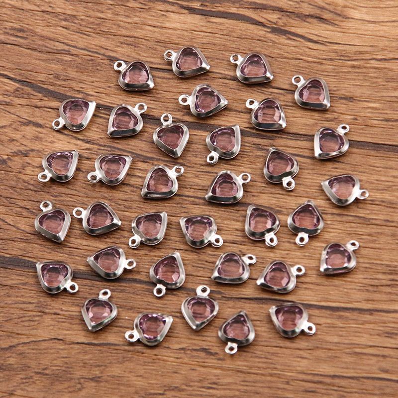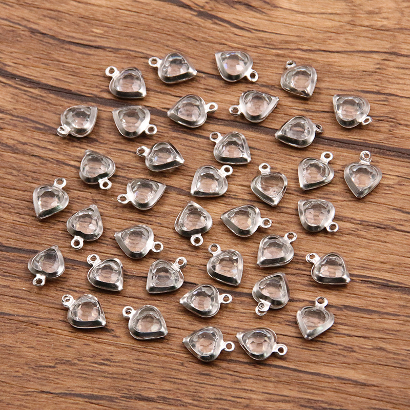 8色 7X10mm 不锈钢饰品配件 钢色爱心水晶吊坠魅力 手链配饰