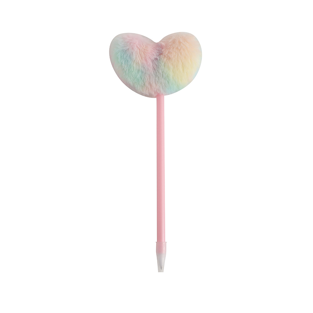 少女卡通心形毛球手账笔学生创意圆珠笔儿童可爱文具毛绒笔礼品笔
