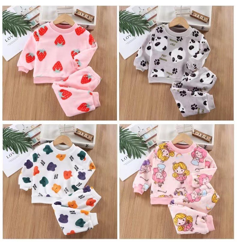 法兰绒儿童睡衣套装 男童女童加绒中大童家居服宝宝双面毛绒内衣
