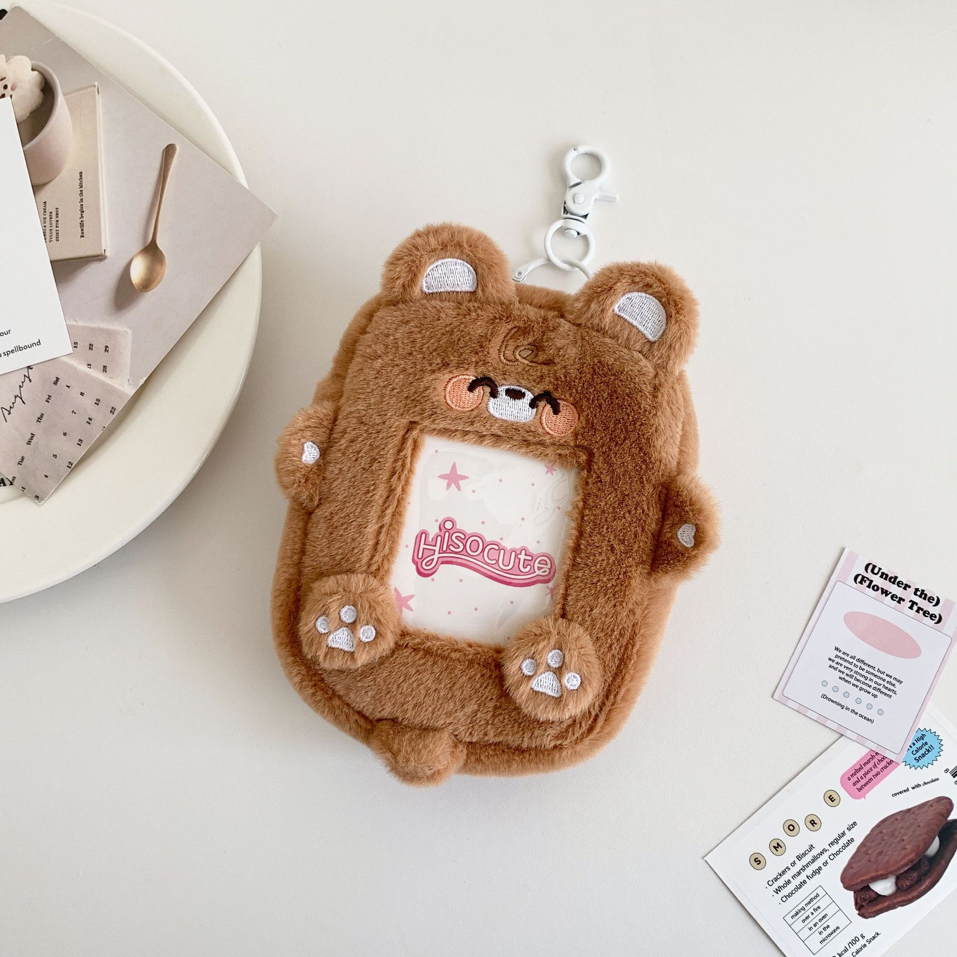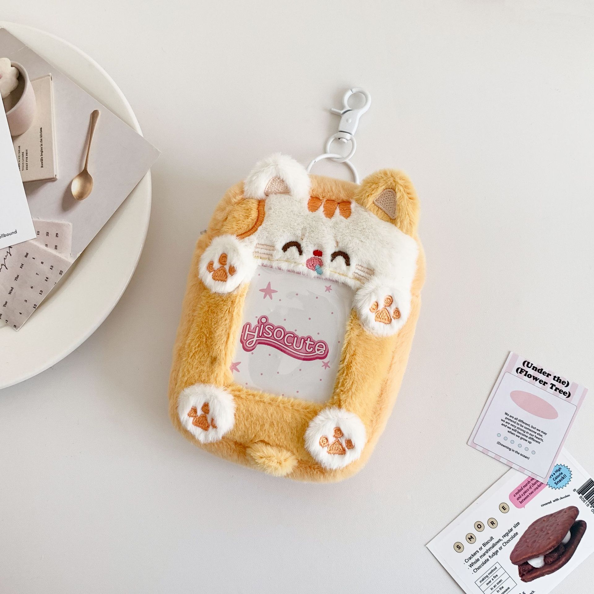 ins卡通镂空动物毛绒卡套少女青蛙猫咪痛包追星三寸小卡卡套挂件