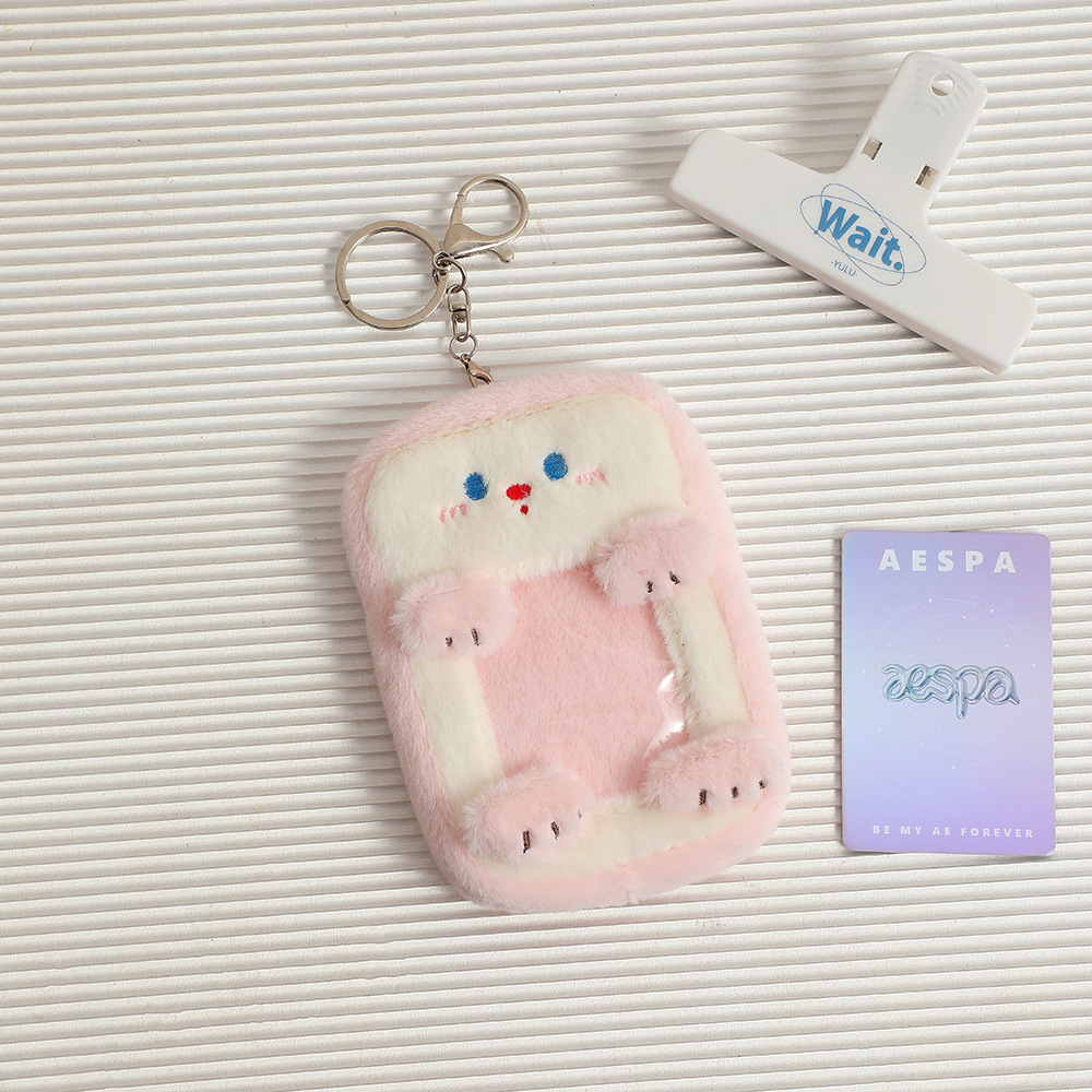 ins少女卡通动物毛绒卡套学生三寸可视镂空卡包爱豆小卡展示挂件