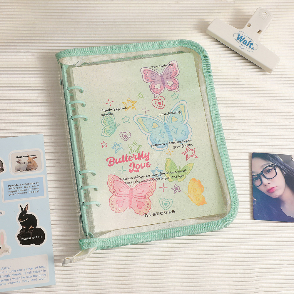 ins韩版透明闪闪A5相册少女拉链全包小卡收纳册学生六孔追星卡册