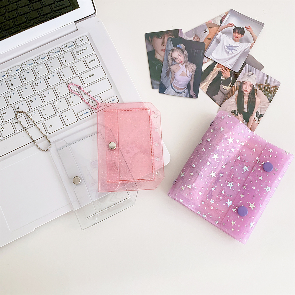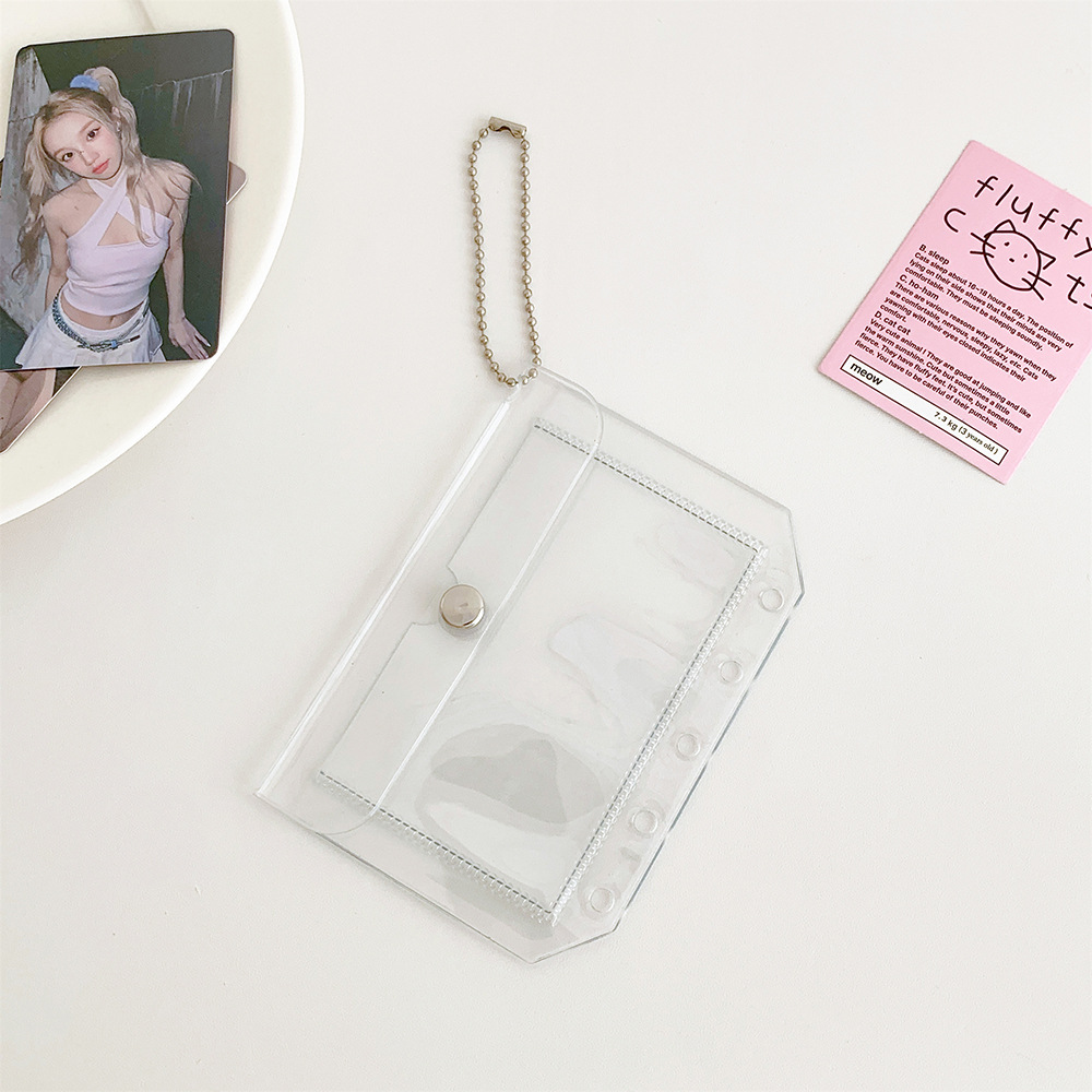 ins夏季PVC透明卡套M5活页卡通替芯收纳袋少女珠链按扣卡包零钱包