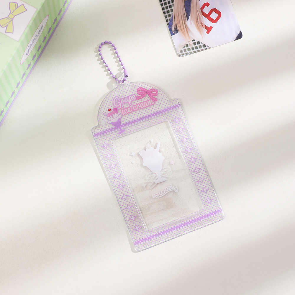 ins夏日闪粉透明三寸卡套学生果冻草莓挂链卡包少女追星咕卡套