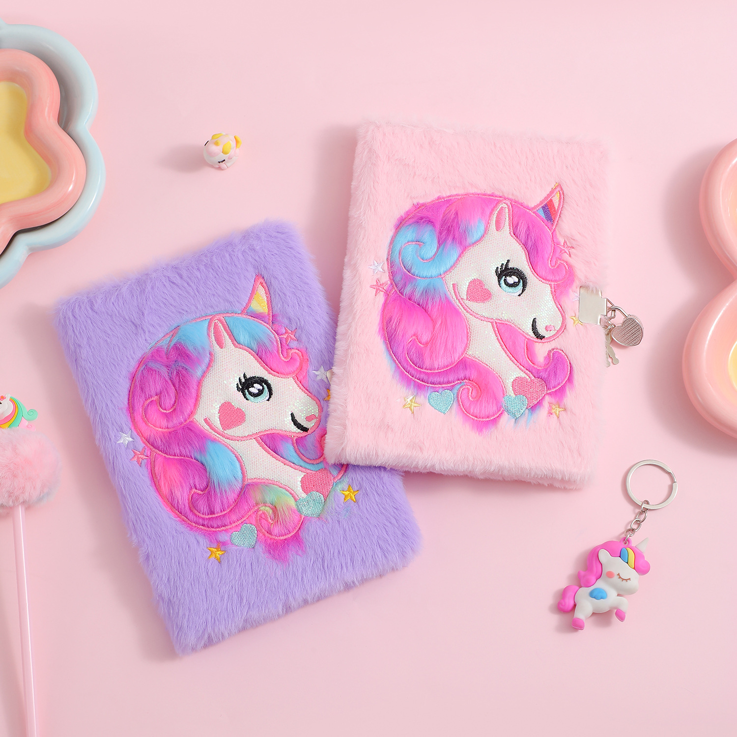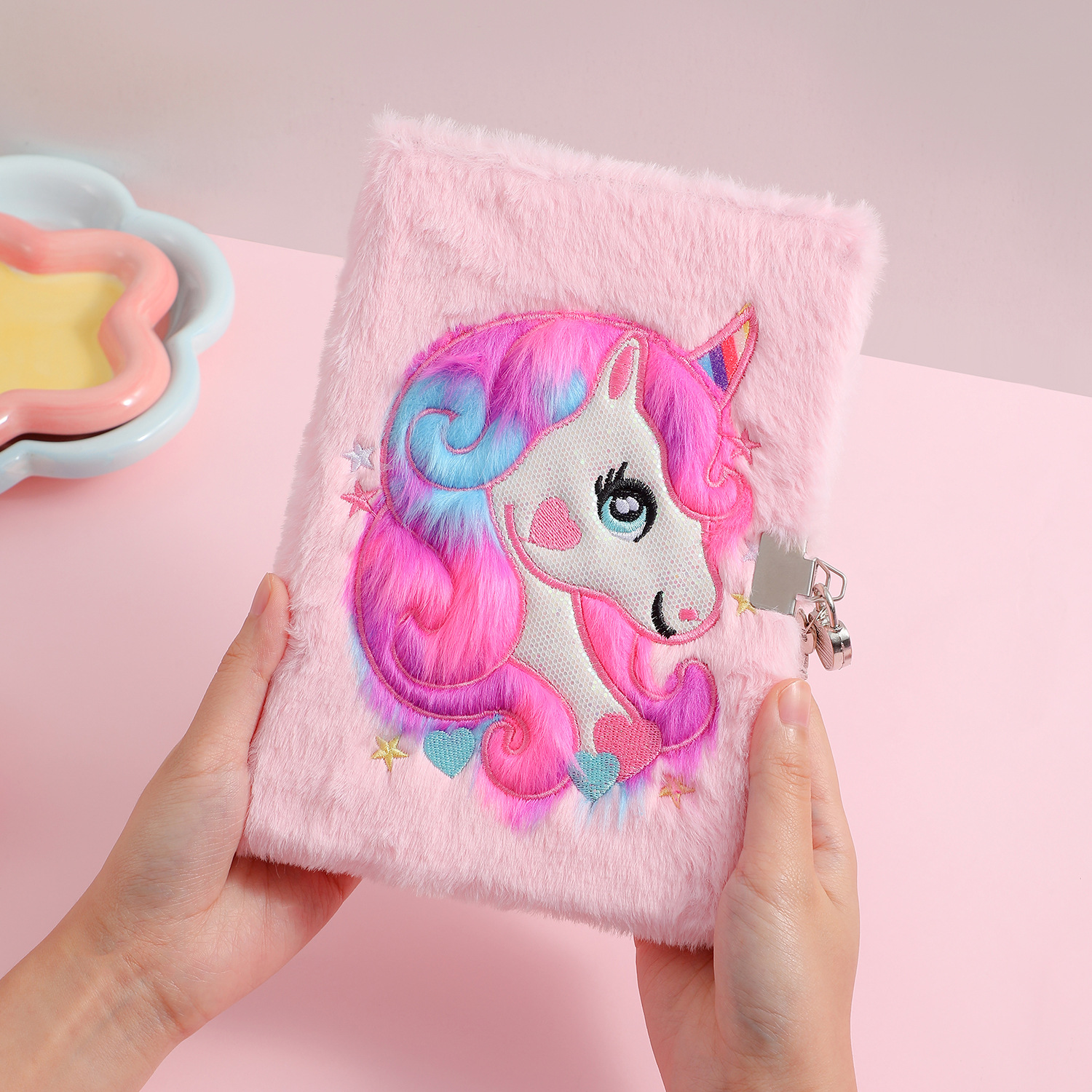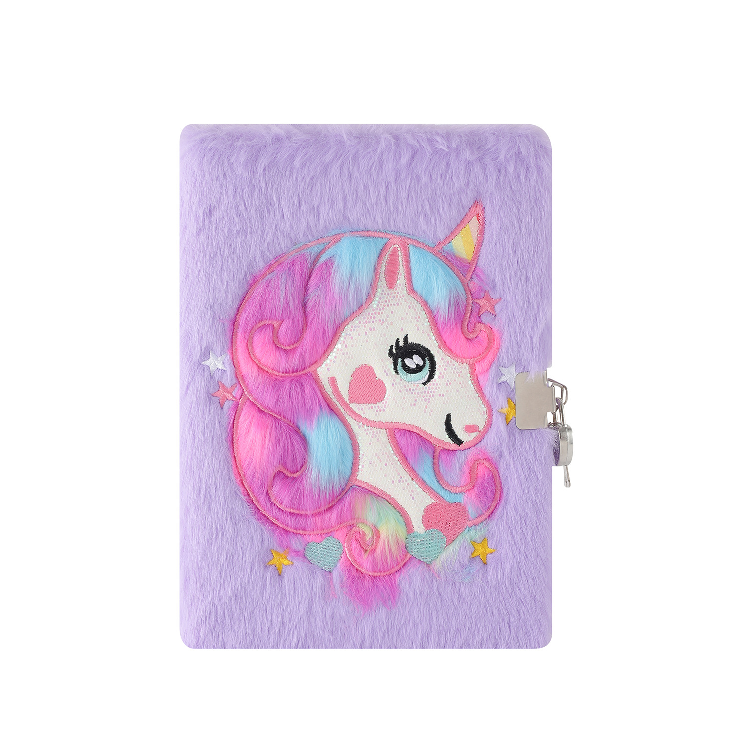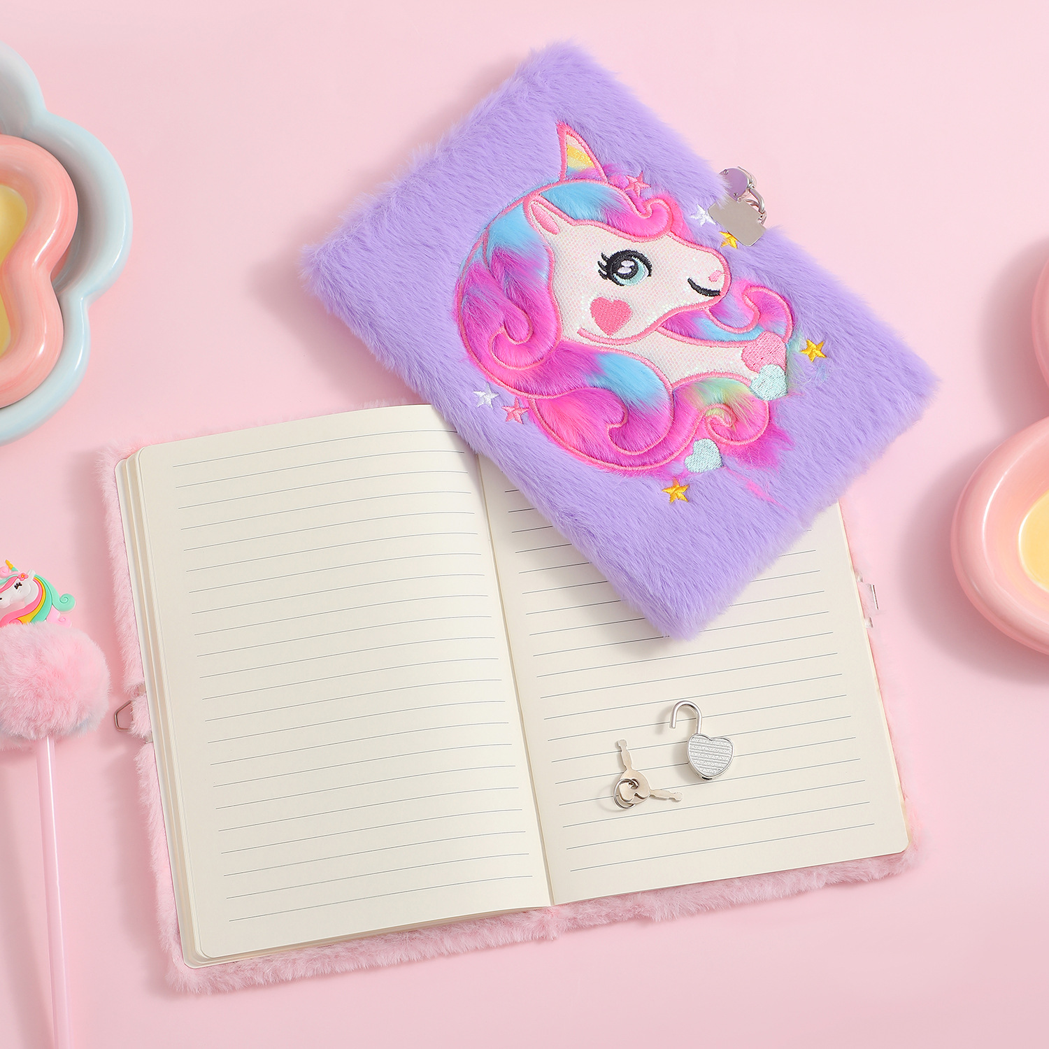 儿童A5独角兽带锁毛绒笔记本学生卡通书写本子少女手账礼物日记本