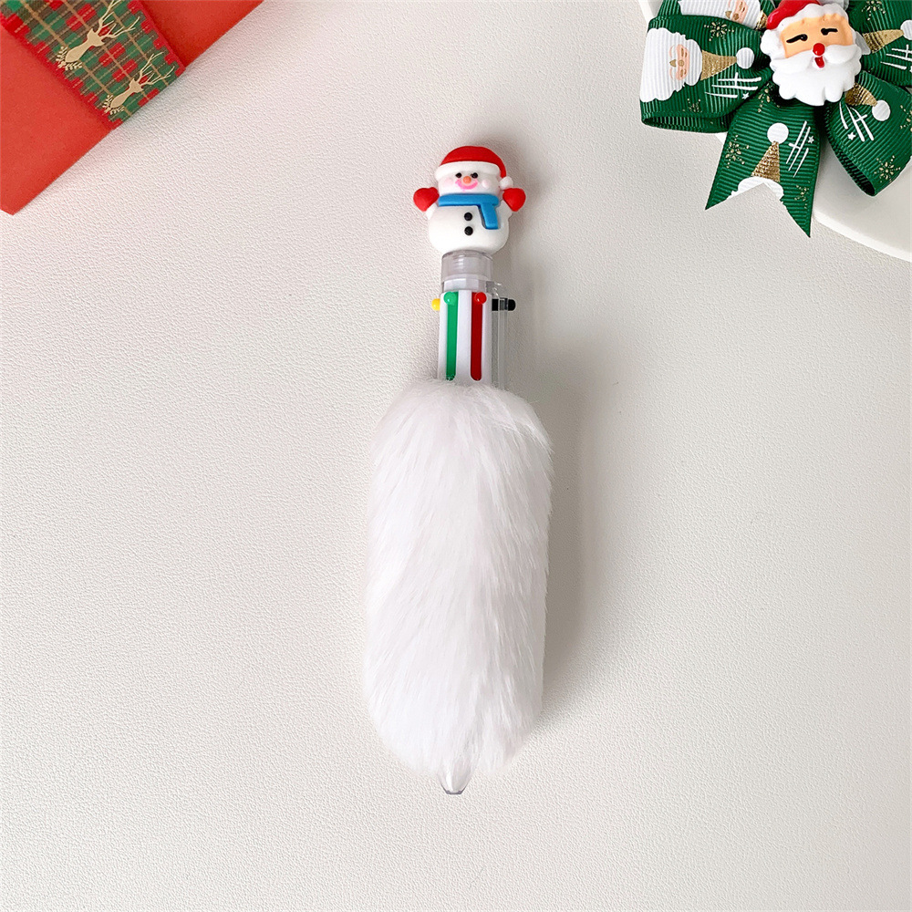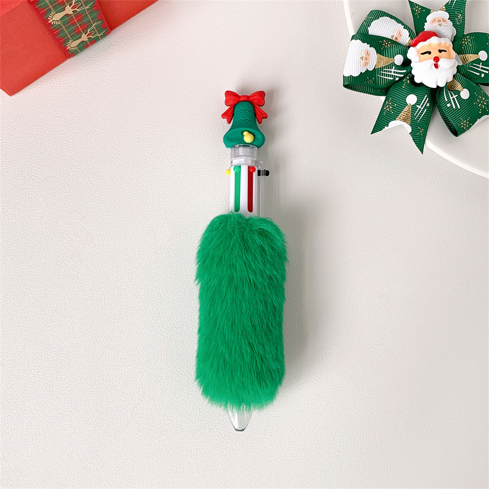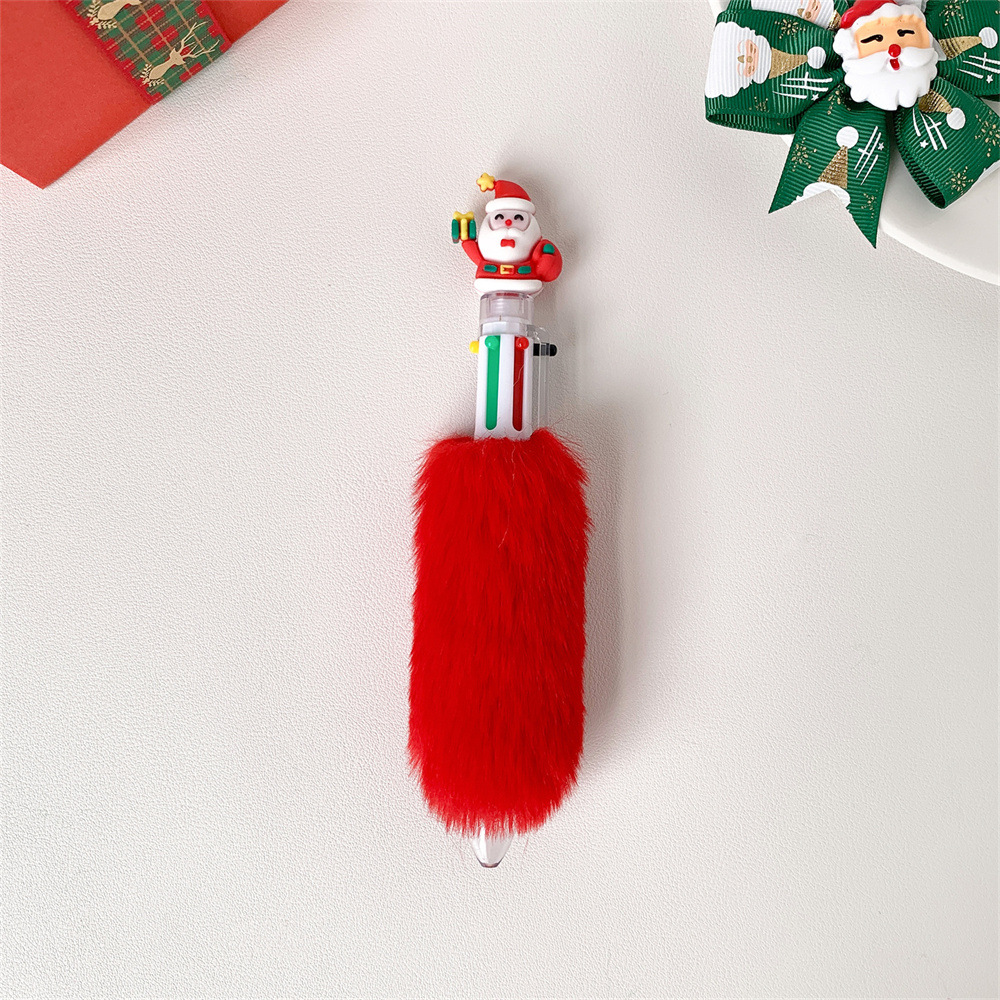 圣诞节卡通六色毛绒笔儿童按动圆珠笔圣诞纪念礼品笔学生节日礼物