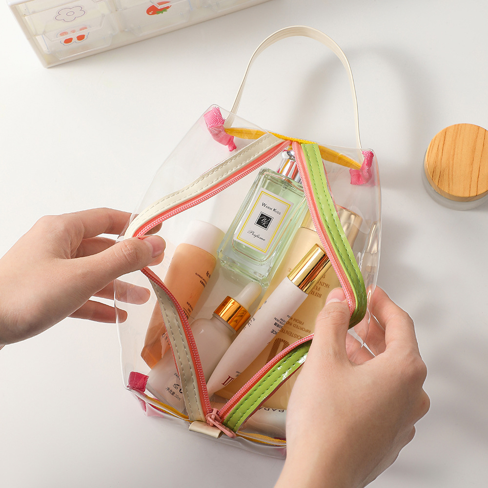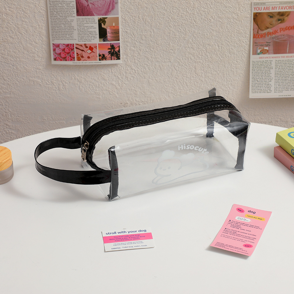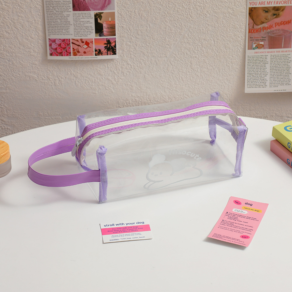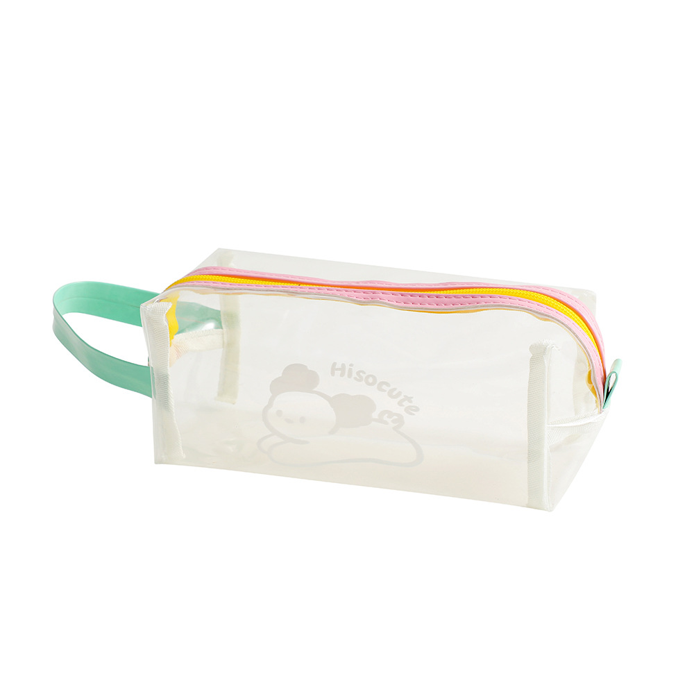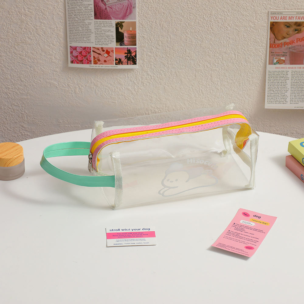 夏季新款PVC透明卡通笔袋学生大容量铅笔文具袋少女手提化妆包