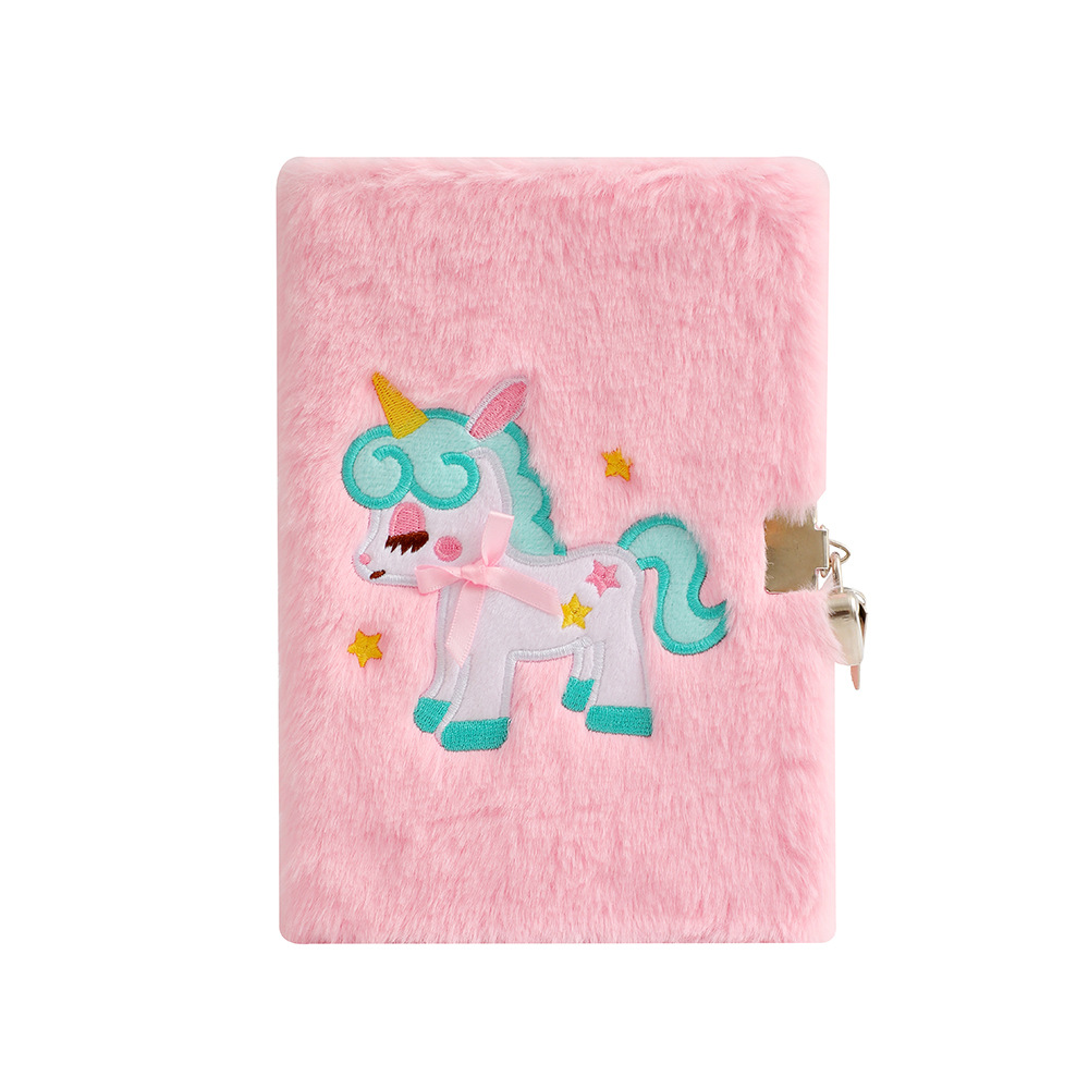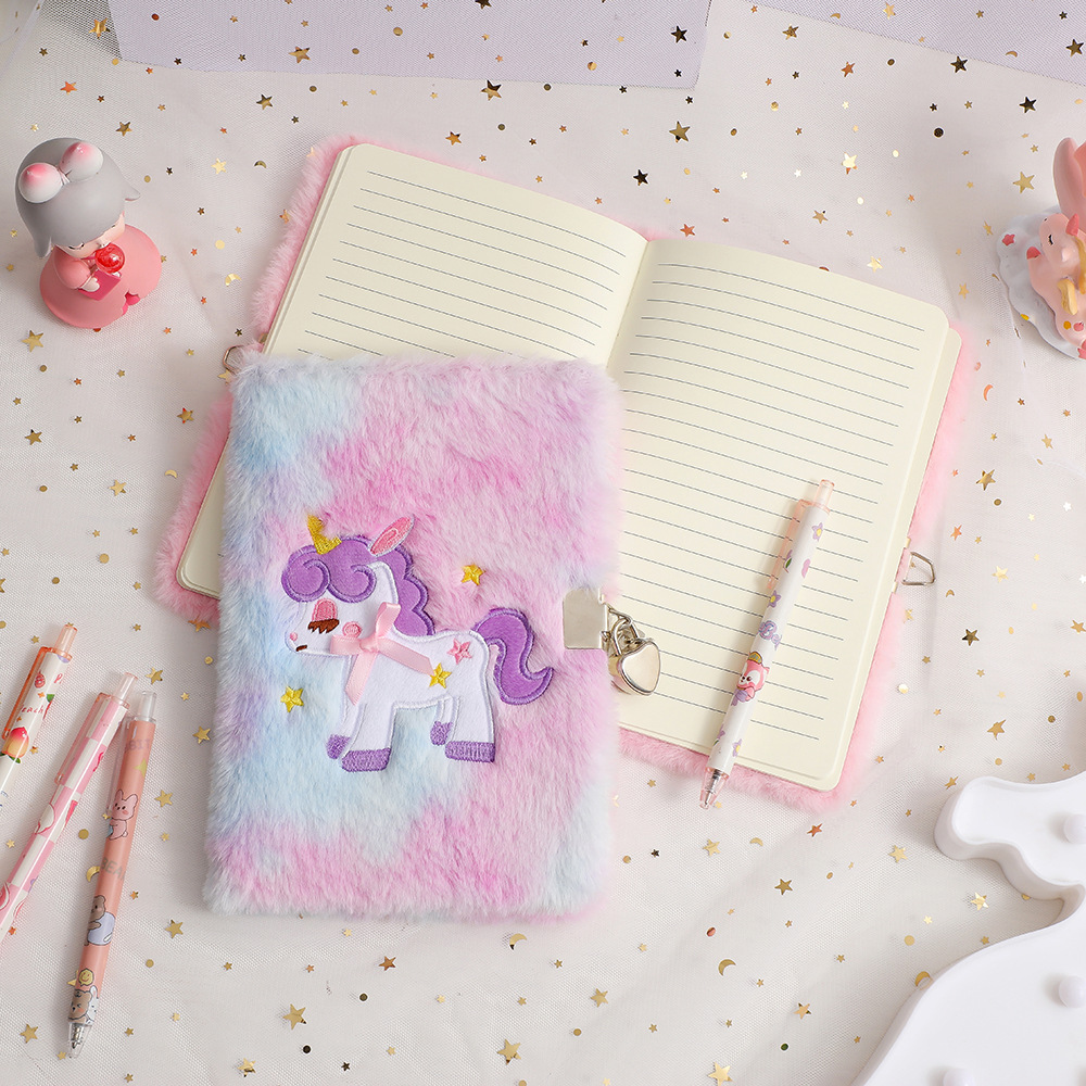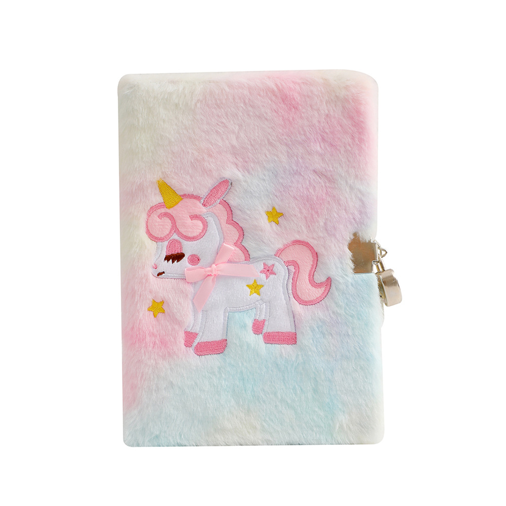 独角兽A5卡通毛绒笔记本儿童可爱带锁日记本少女学生书写手账本子
