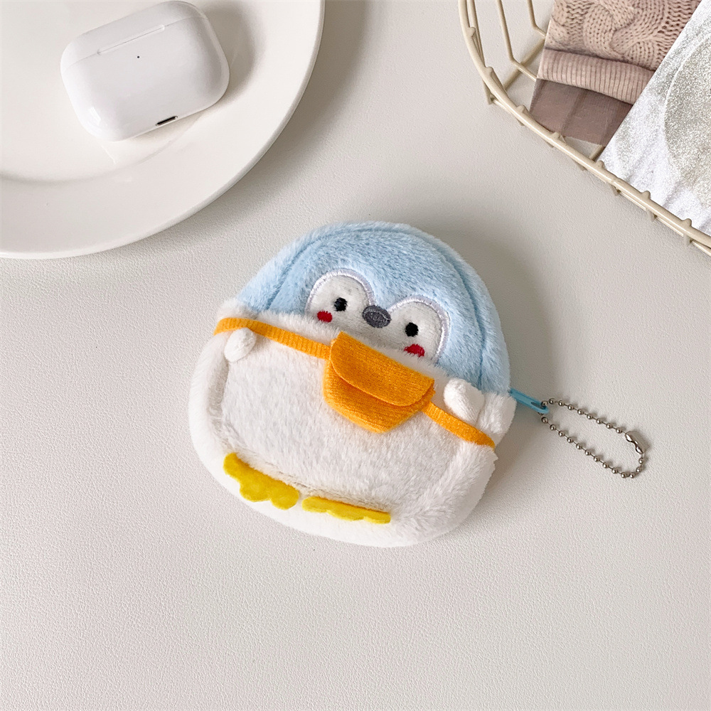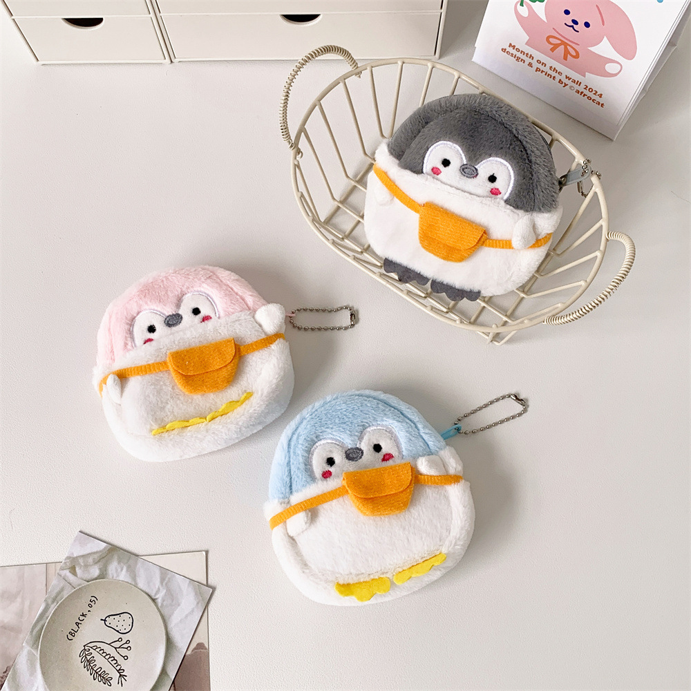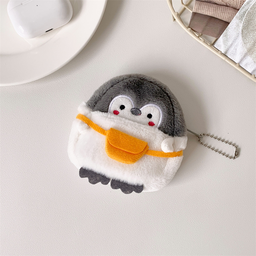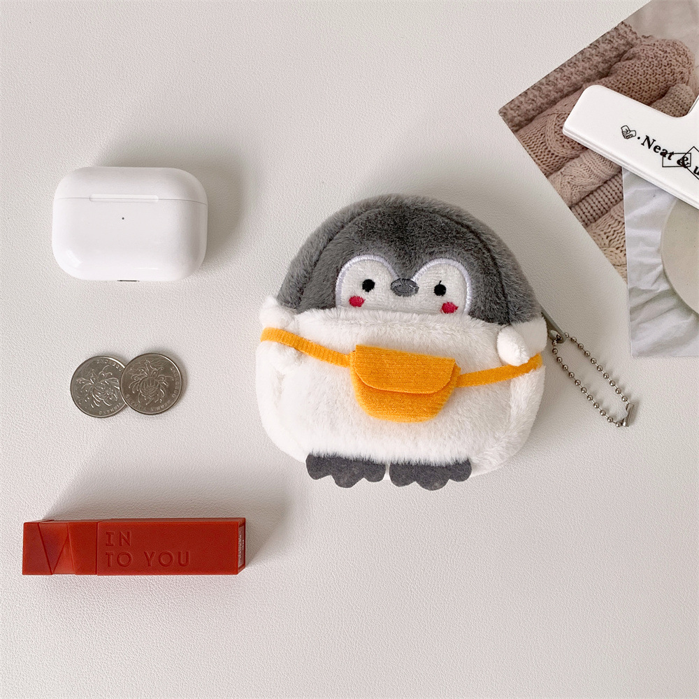 少女卡通挎包企鹅零钱包趣味毛绒耳机收纳包儿童礼物硬币钱包挂件