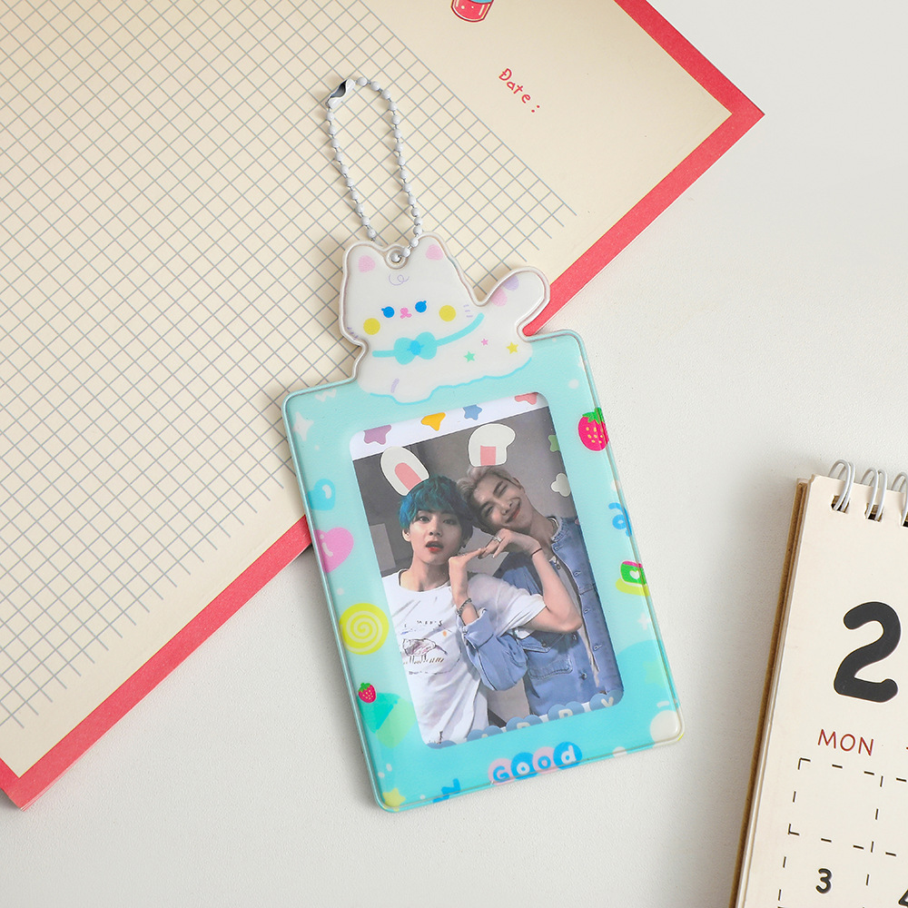 ins韩版少女可爱猫咪卡套三寸拍立得相片卡包追星小卡收纳挂件