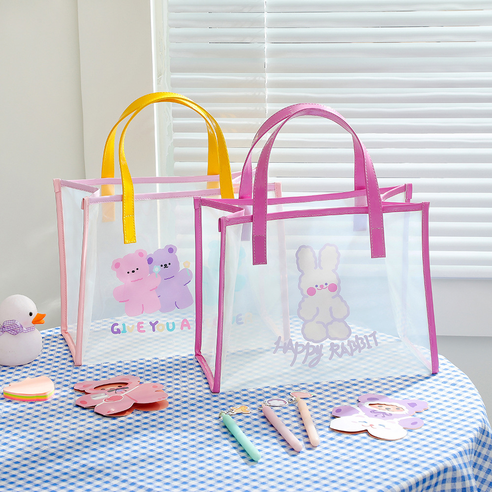 夏季少女果冻包ins可爱卡通透明单肩包防水沙滩包学生旅行手提包