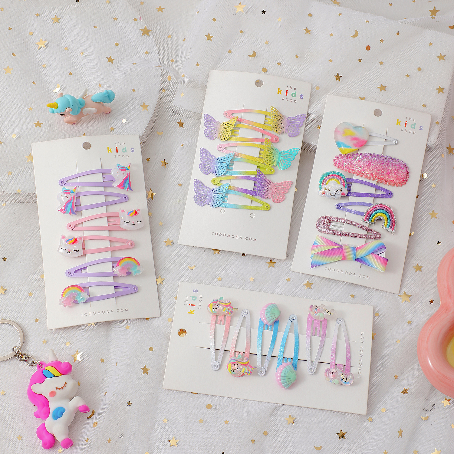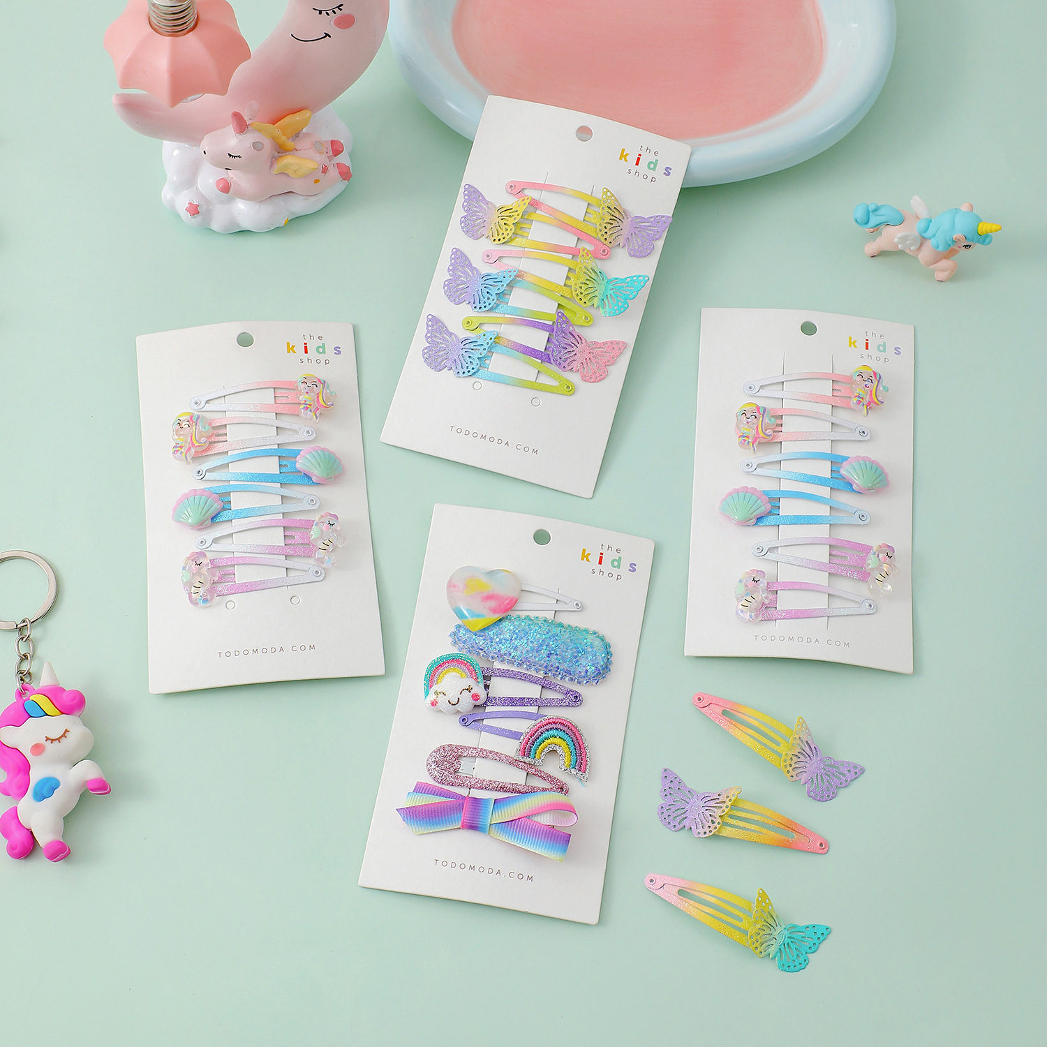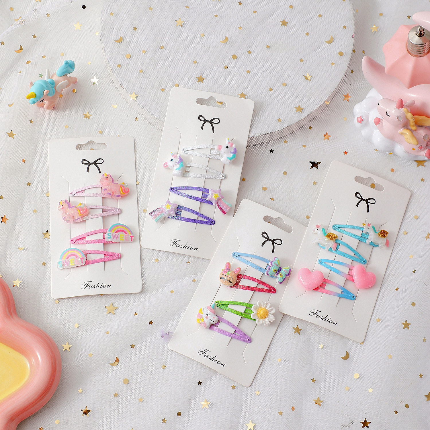 卡通儿童6件套独角兽发夹少女蝴蝶闪粉BB夹学生留海发卡可爱头饰