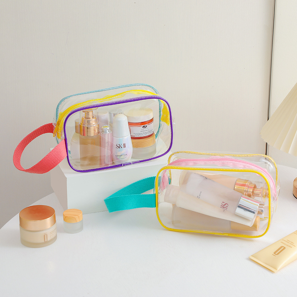 2024新款PVC透明手提包少女拼色简约化妆包杂物收纳包学生笔袋女