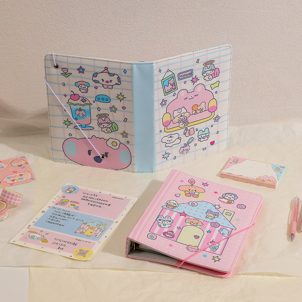 韩版A5卡通手账本少女活页六孔笔记本学生彩页记事本生日礼物本子