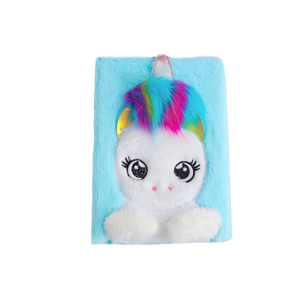 创意新款卡通独角兽毛绒笔记本大眼睛可爱少女记事本儿童书写本子