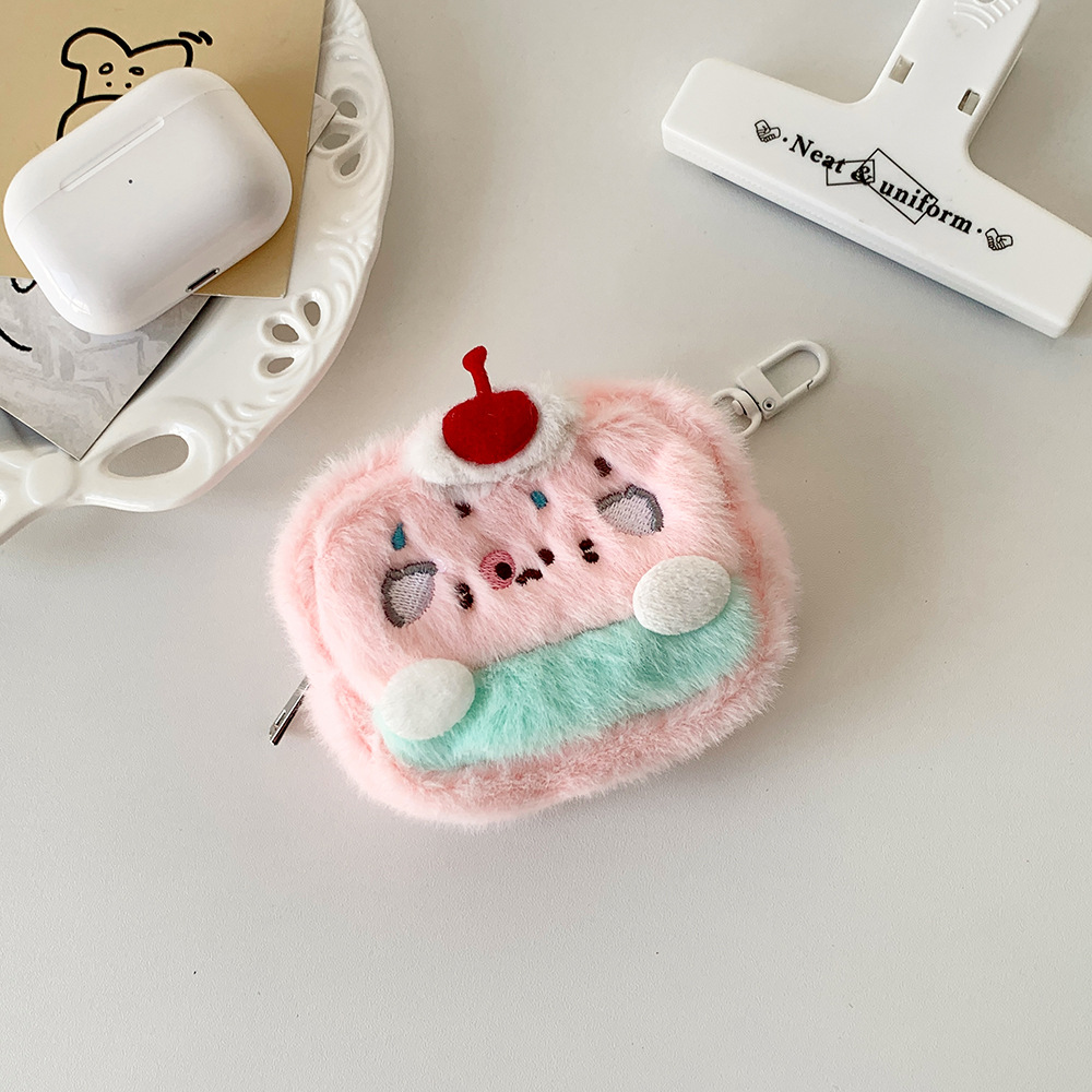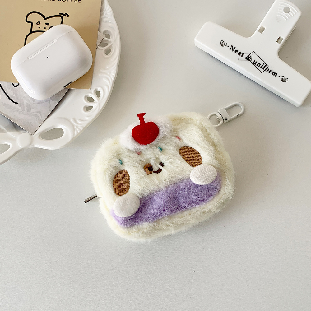 卡通樱桃小狗毛绒耳机收纳包少女可爱毛绒零钱包便携口袋耳机套