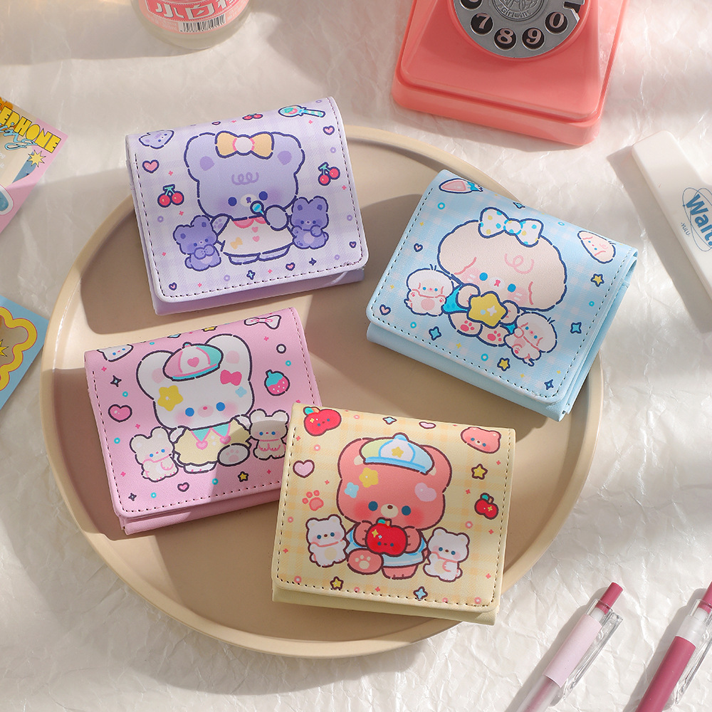 ins韩版少女卡通小熊短款钱包学生多卡位零钱包儿童可爱小钱包