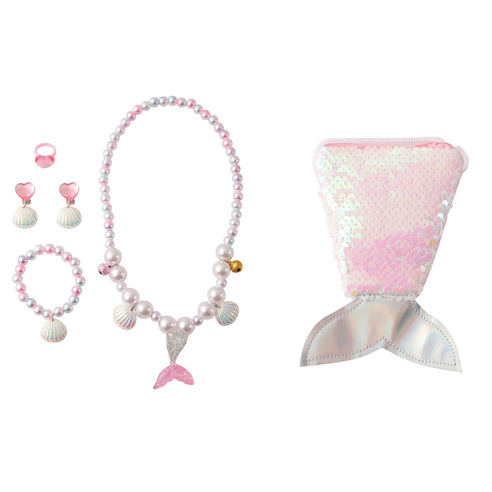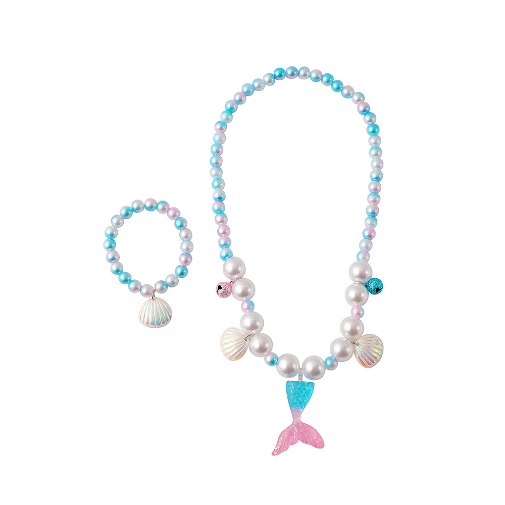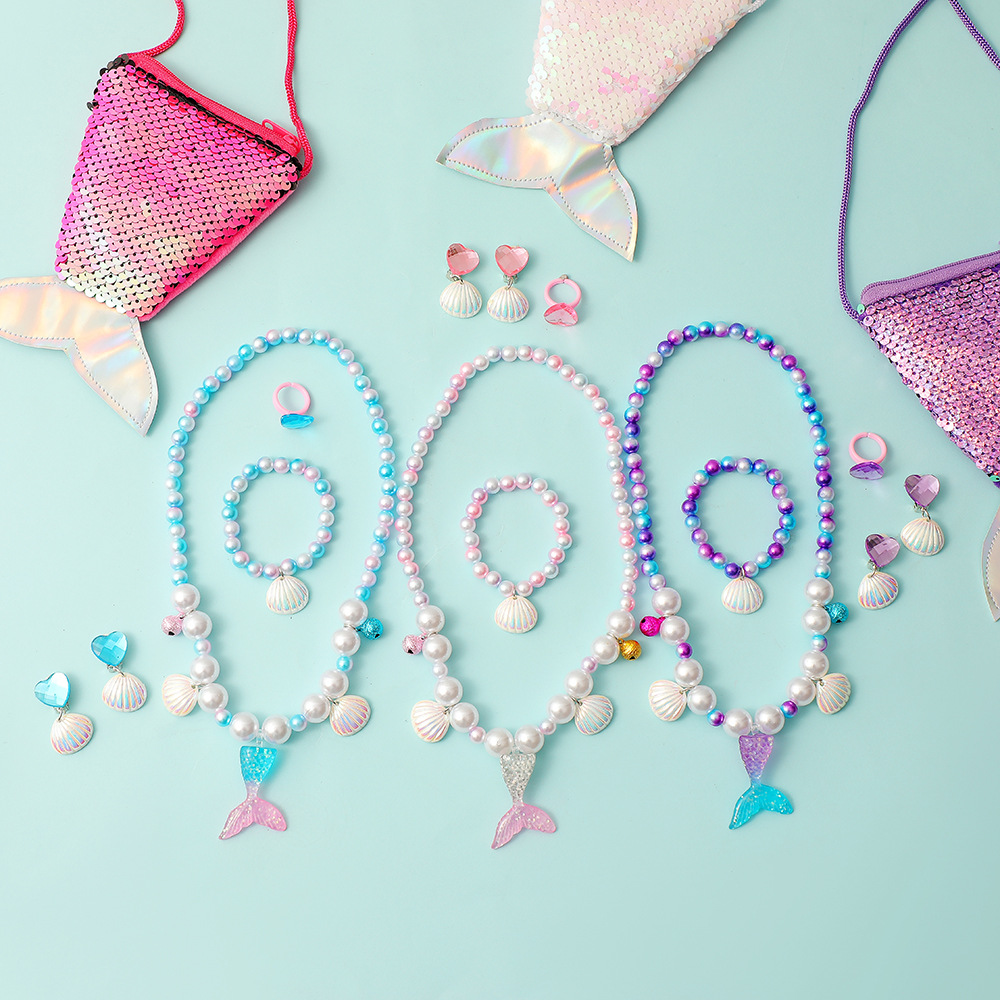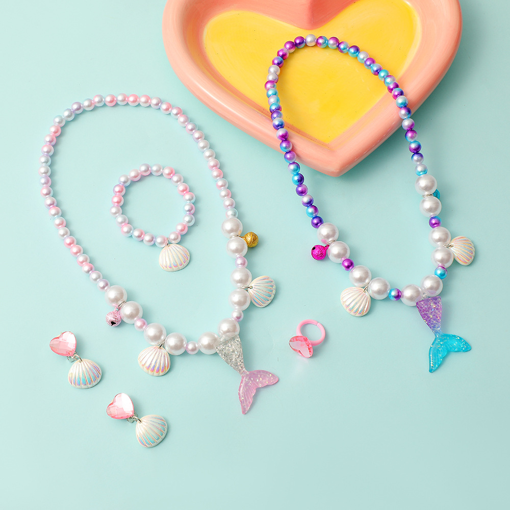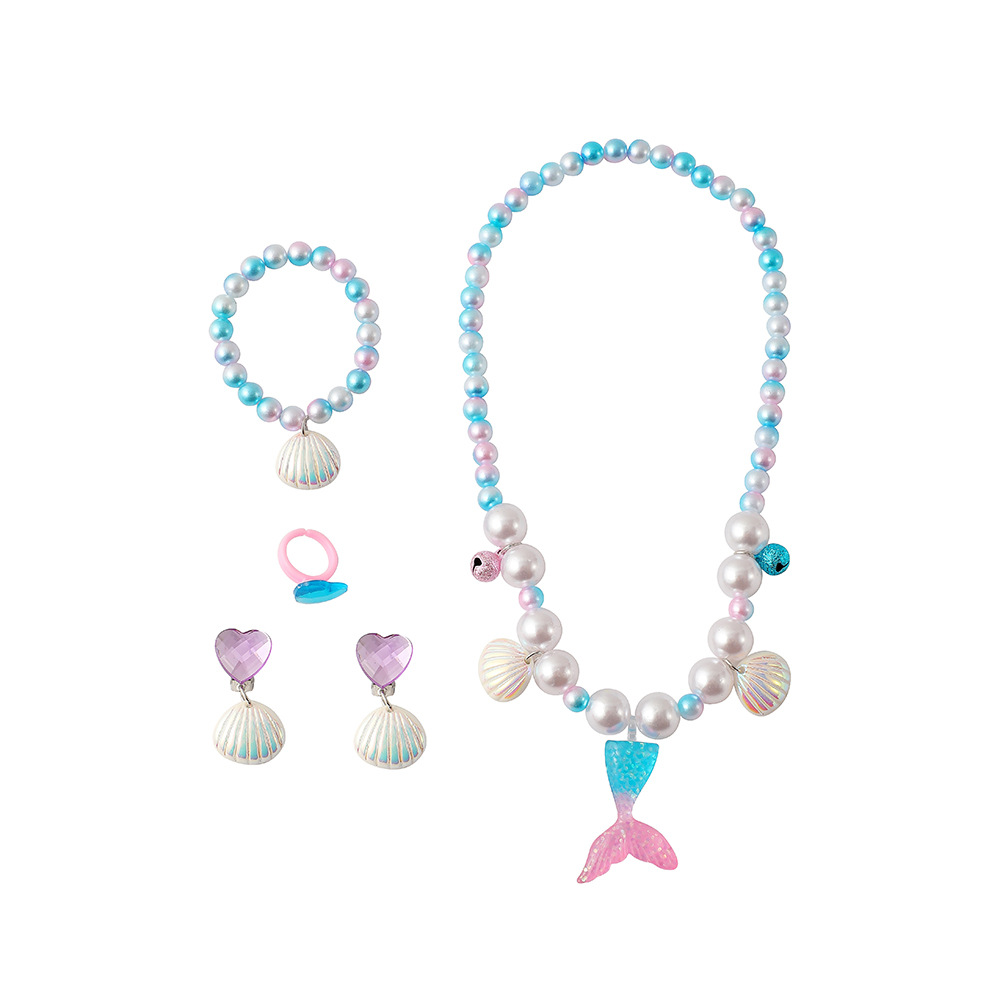 新款卡通儿童美人鱼串珠项链幼儿园女童戒指手链耳环首饰套装礼物