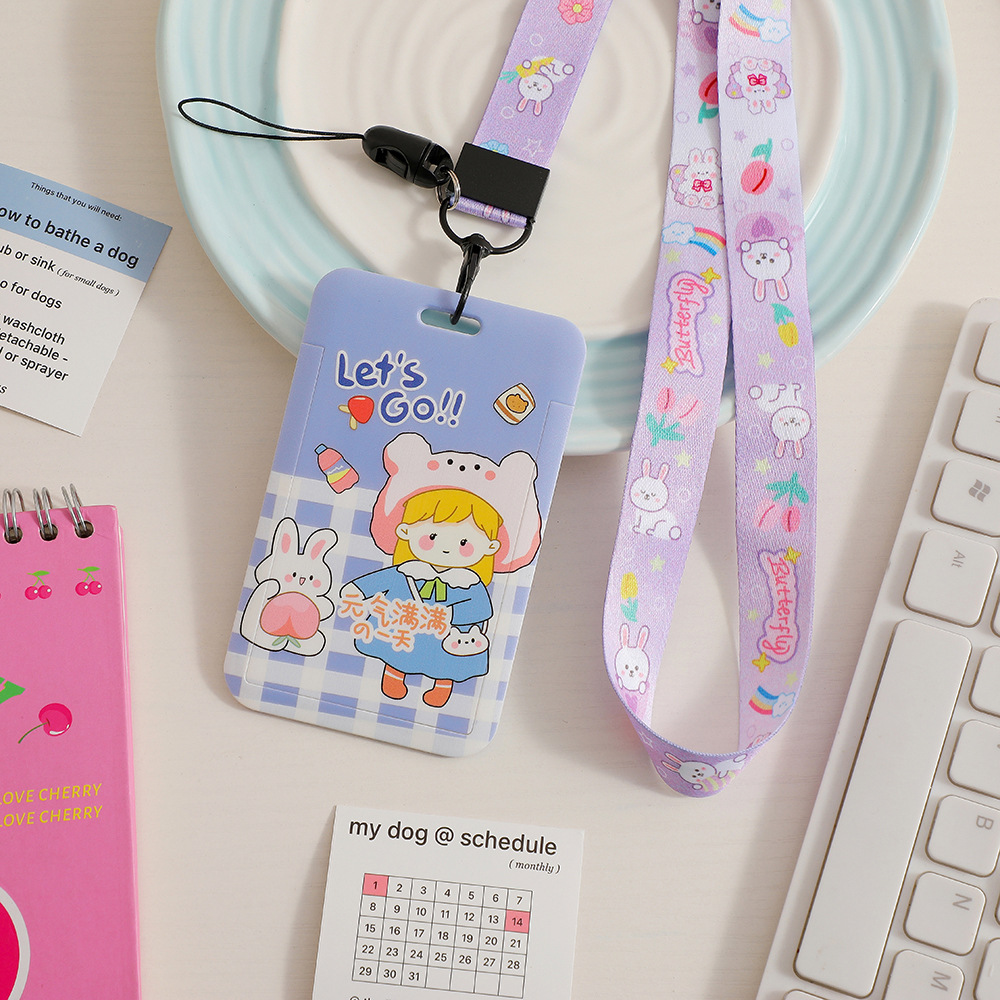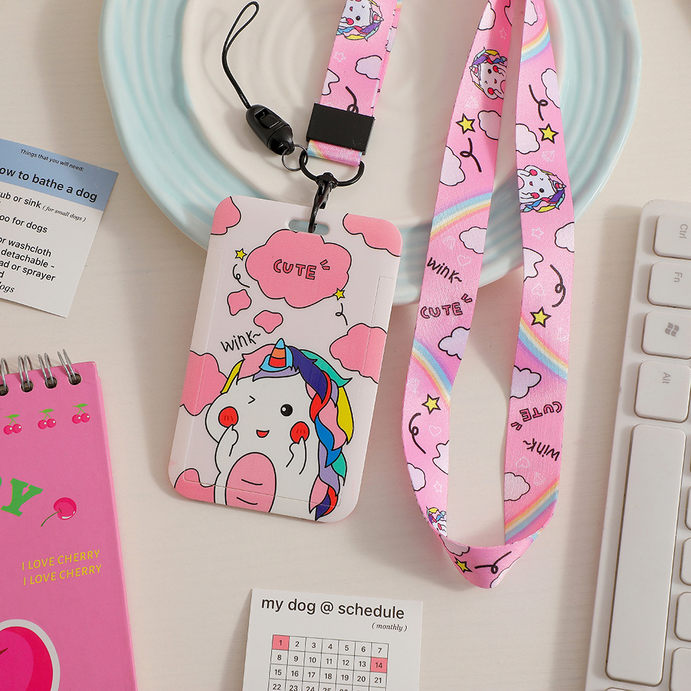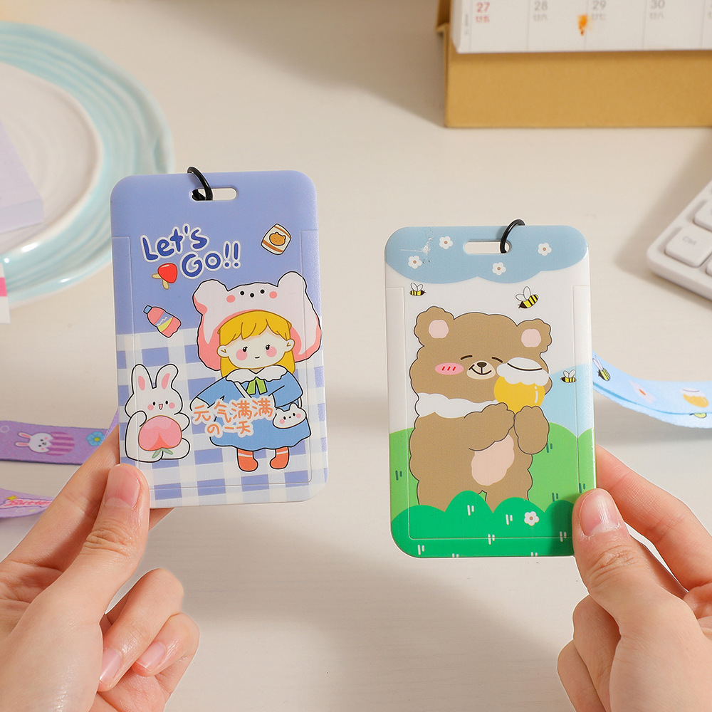 ins韩版少女卡通学生挂脖证件硬卡套学生饭卡公交卡卡包门禁卡套
