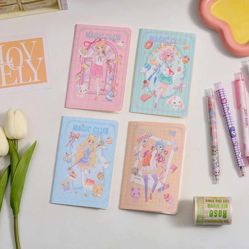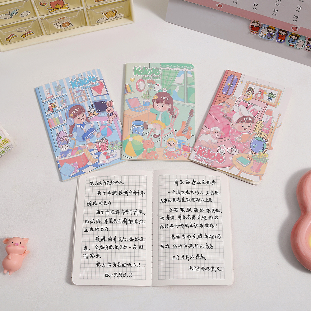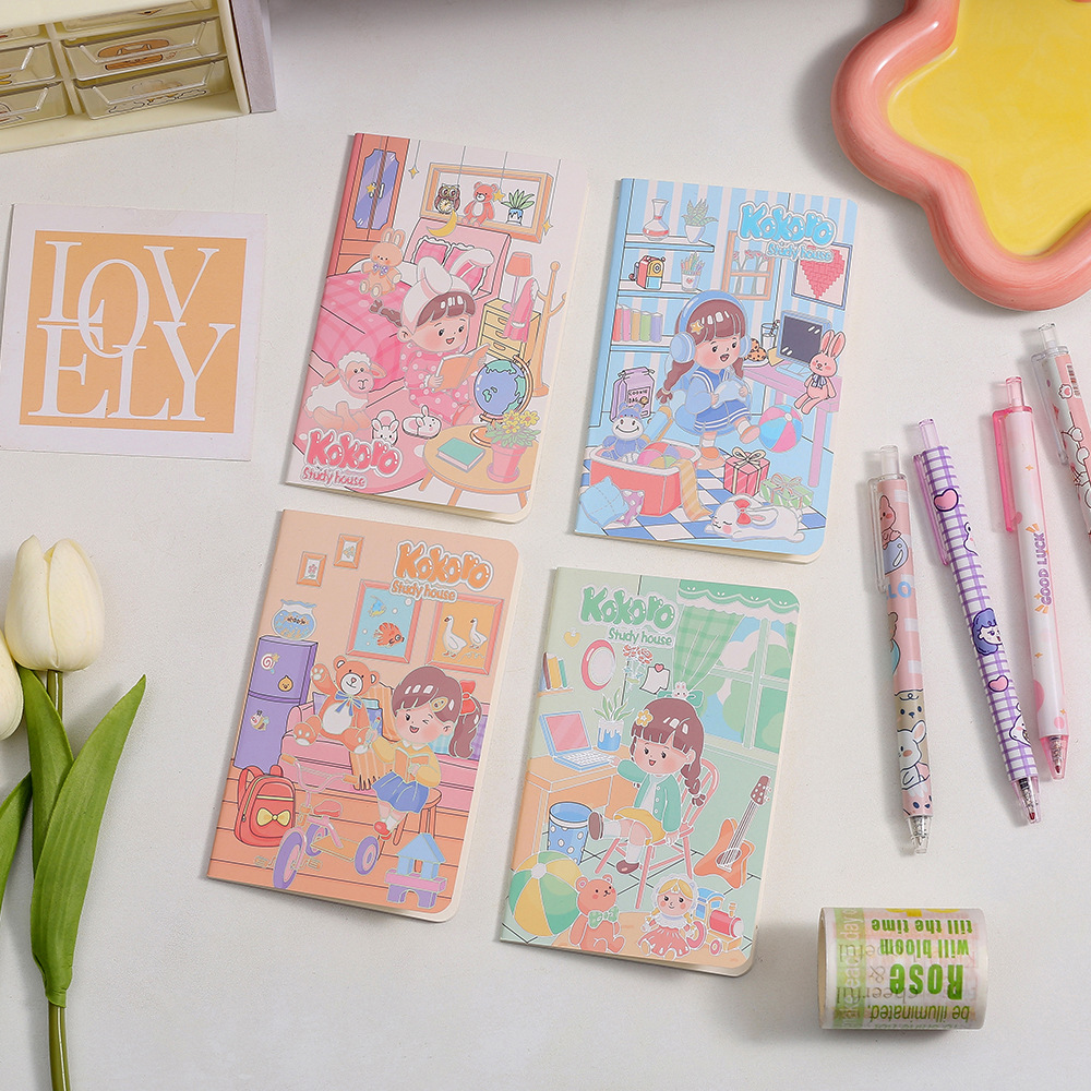 创意新款韩版卡通少女手账本学生4本装组合本子便签本儿童笔记本