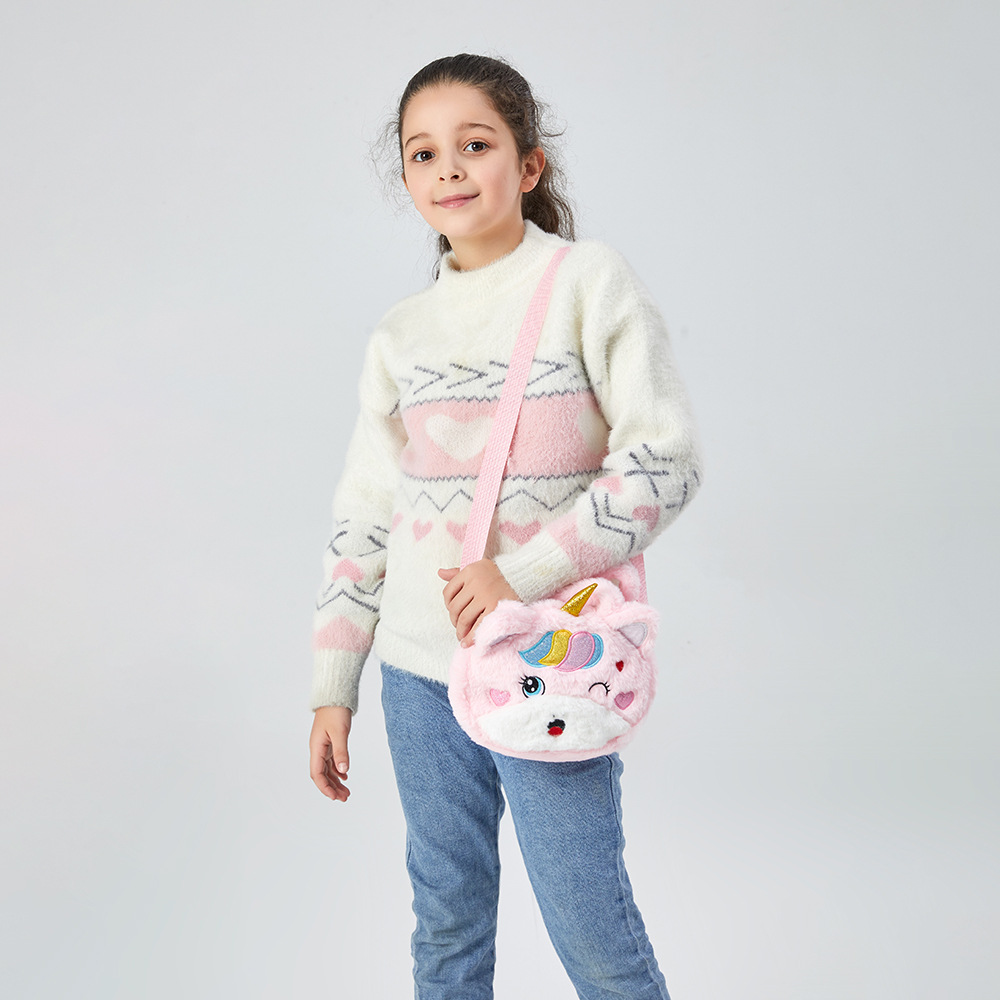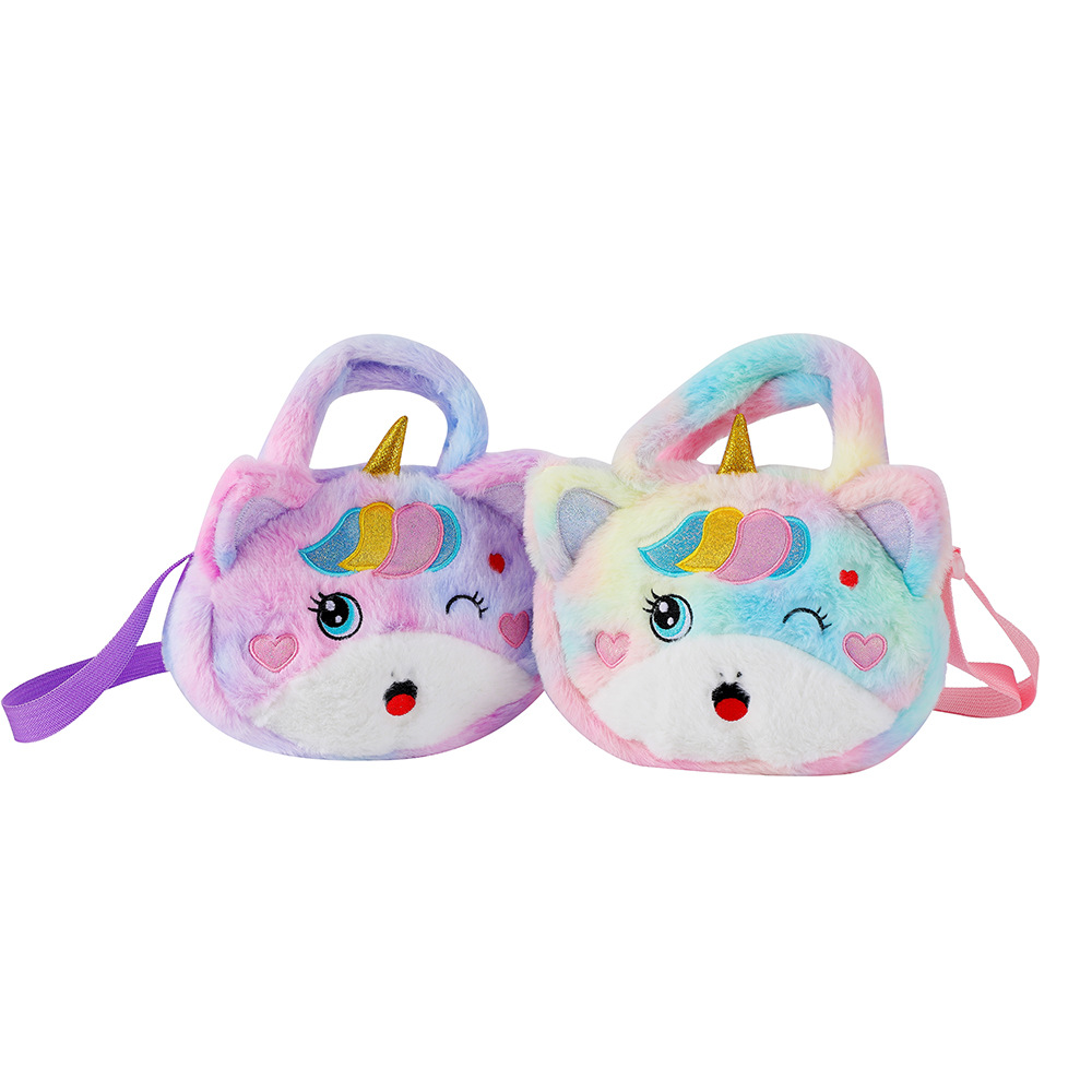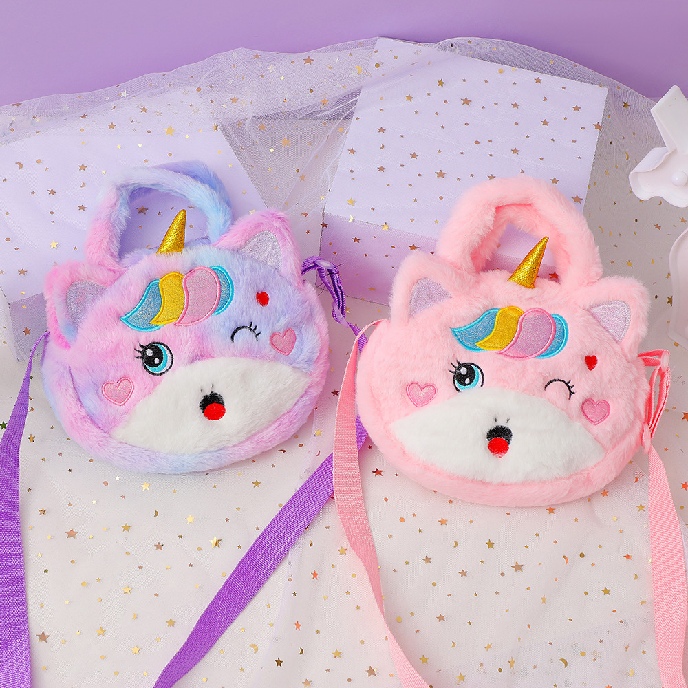 2022儿童卡通独角兽毛绒单肩斜挎包幼儿园女童可爱手提包零钱包